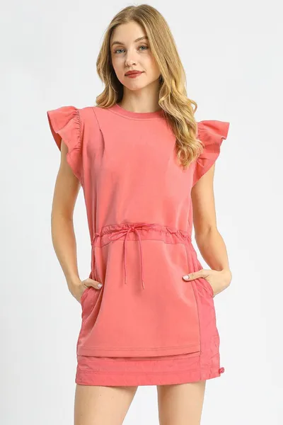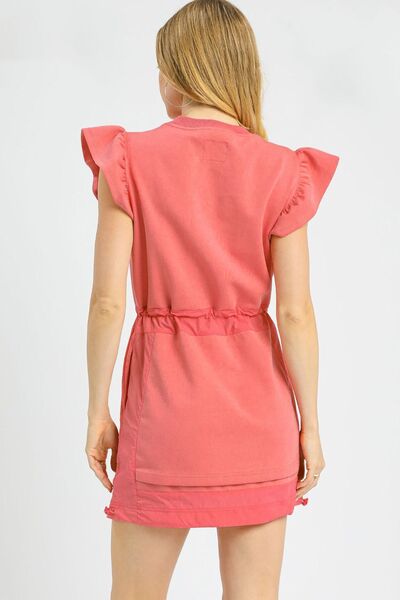 Umgee Luxe knit Ruffle Sleeve Drawstring Mini Dress