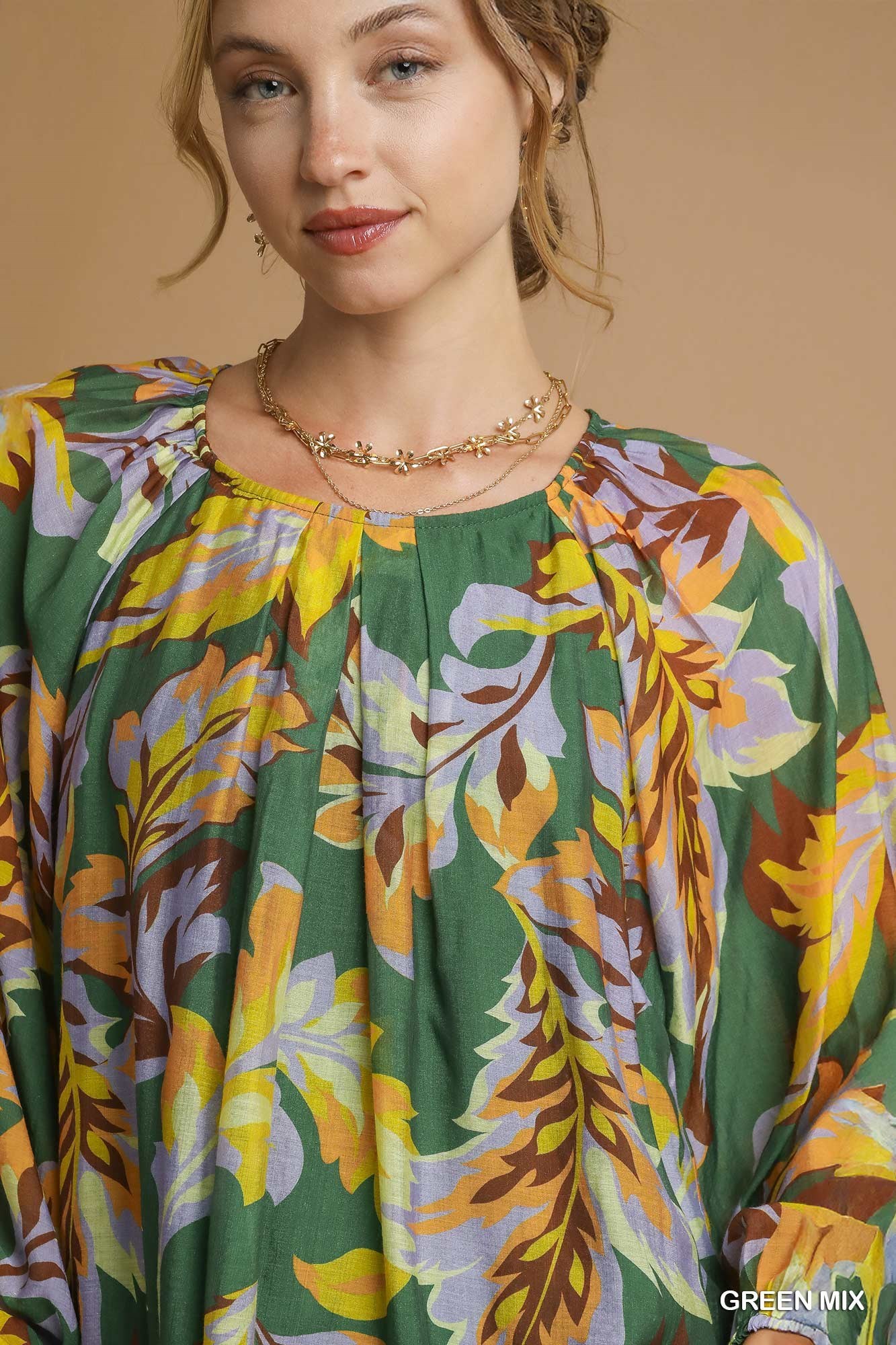 Umgee Mix Abstract Print Balloon Sleeve Blouse