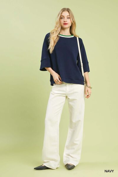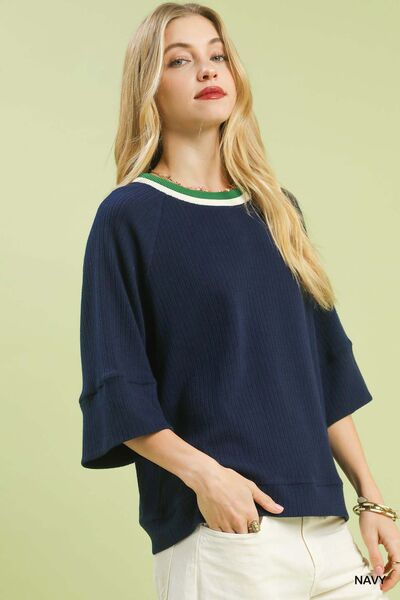 Umgee Ribbed Knit Top with Contrast Trim