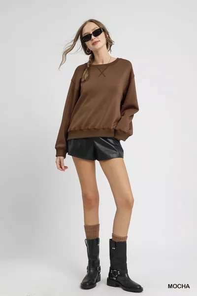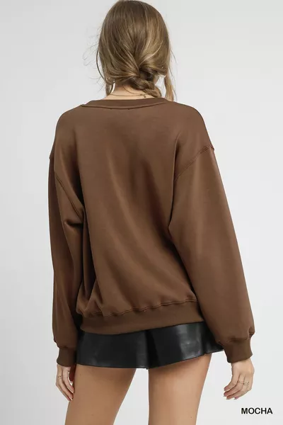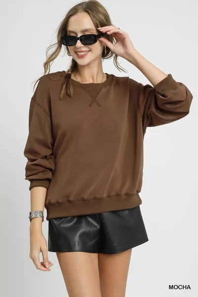 Umgee Round Neck Long Sleeve Fleece Sweatshirt