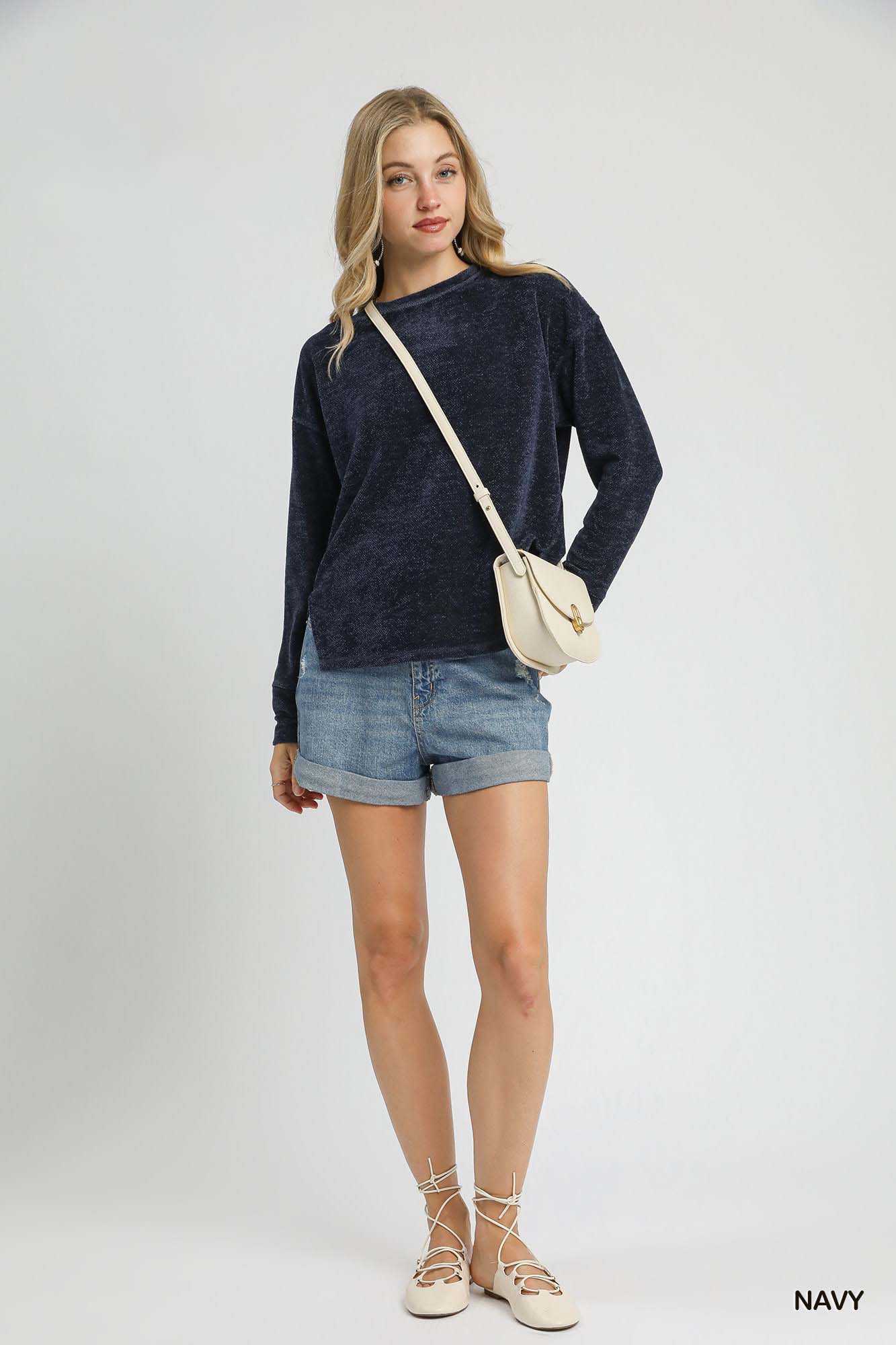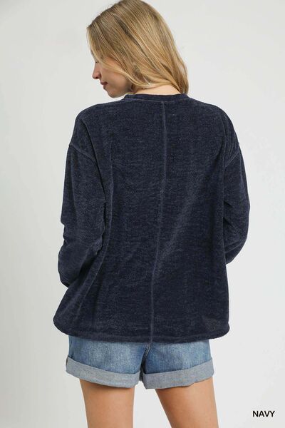 Umgee Round Neck Long Sleeve Side Slit Top