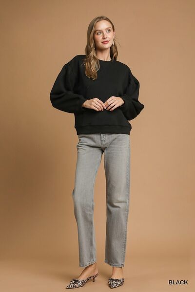 Umgee Round Neck Sweatshirt with Pleated Detail