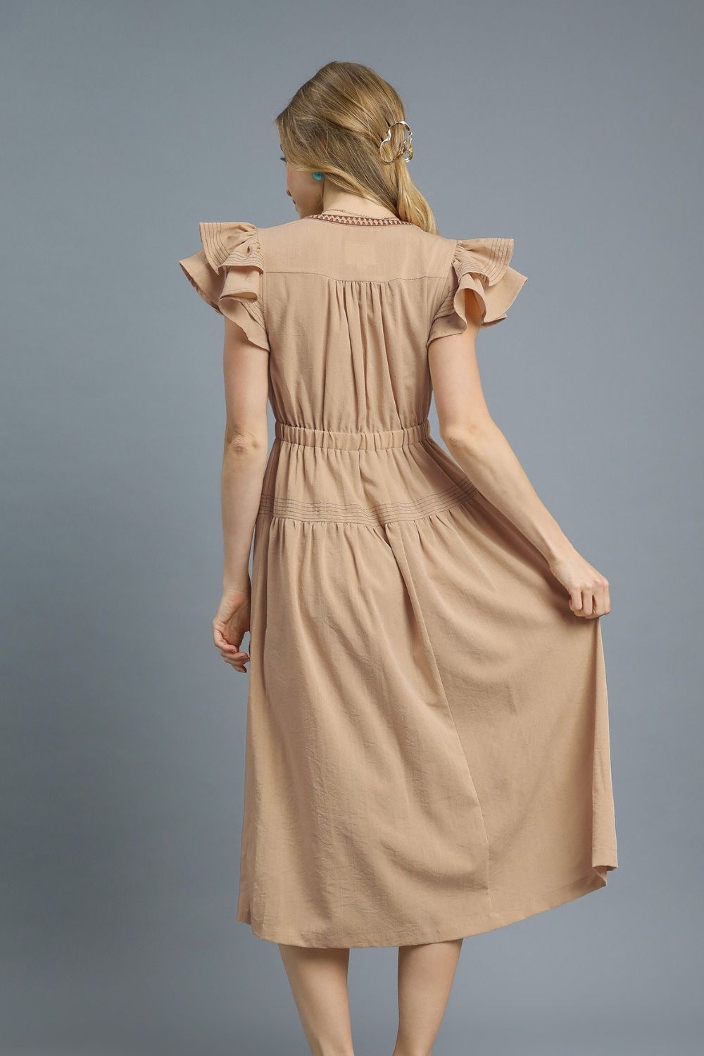 Umgee Ruffled Cap Sleeve Midi Dress with Contrast Trim Detail