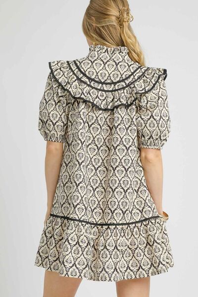 Umgee Ruffled Printed Puff Sleeve Mini Dress