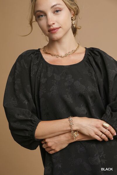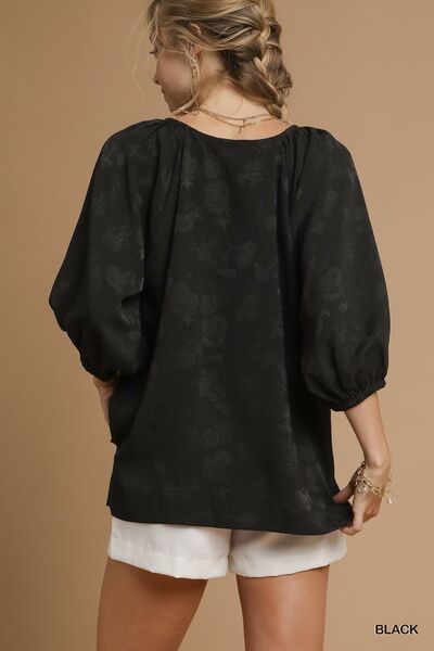 Umgee Satin Jacquard Balloon Sleeve Blouse