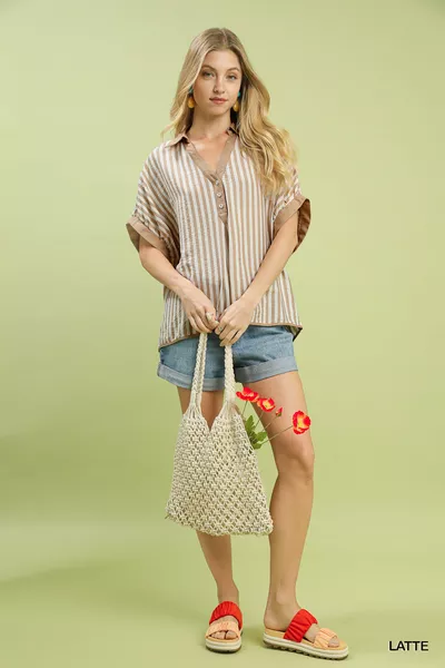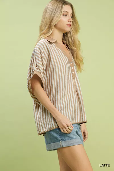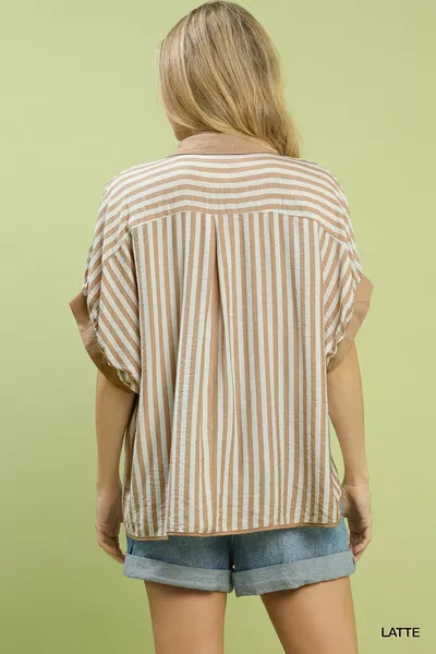 Umgee Stripe Collared Oversized Top