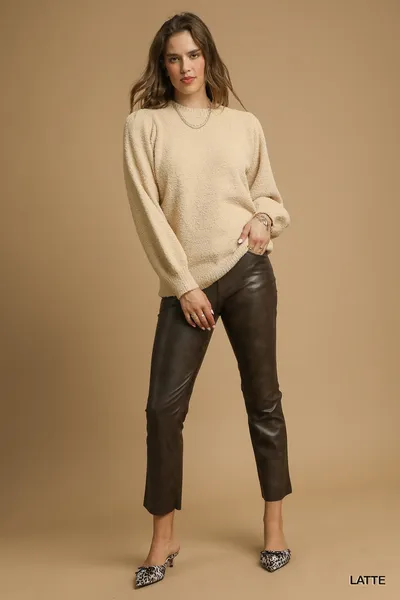Umgee Textured Long Sleeve Sweater with Ribbed Trim