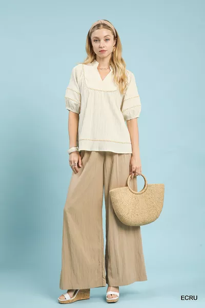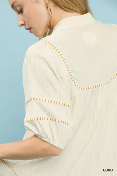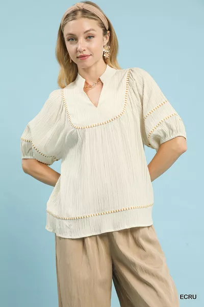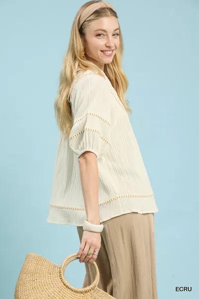Umgee Textured Short Sleeve Top with Contrast Trim