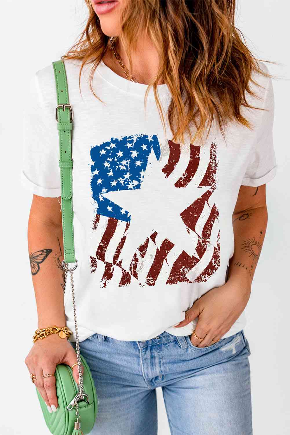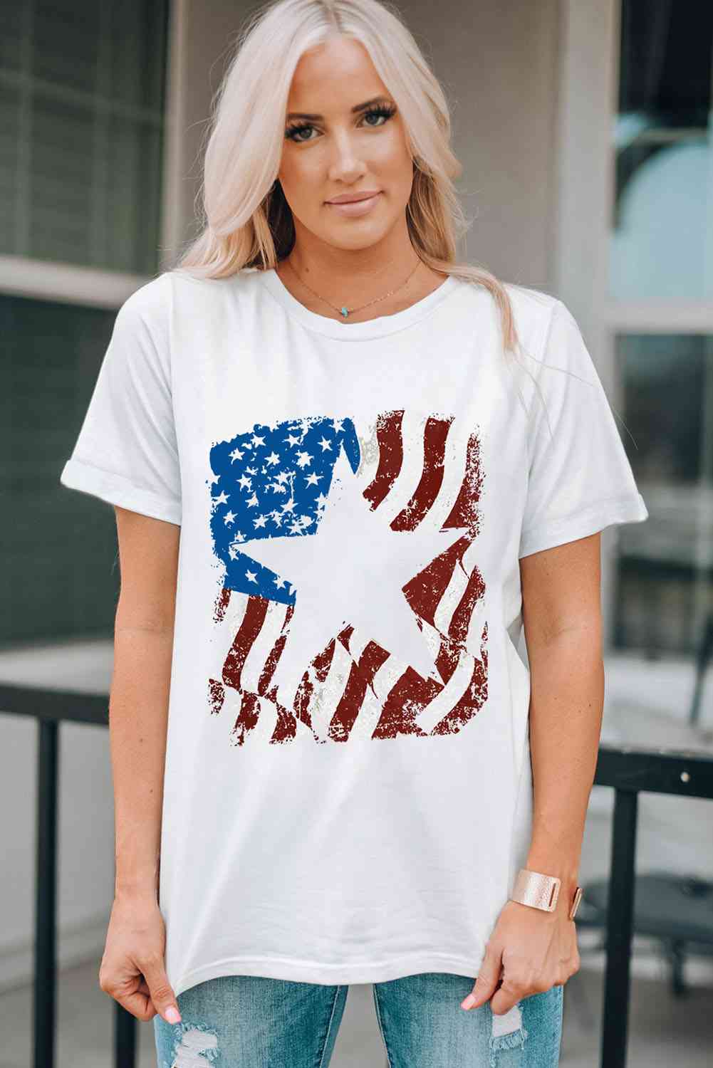 US Flag Graphic Round Neck Tee