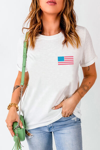 US Flag Round Neck Short Sleeve T-Shirt