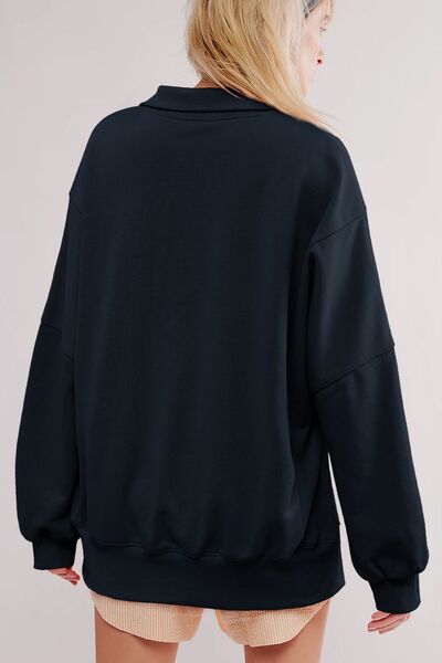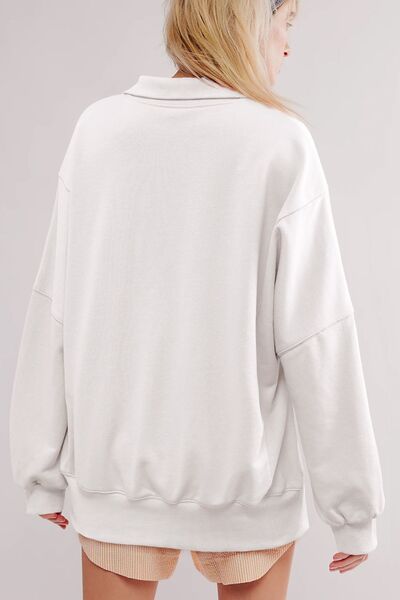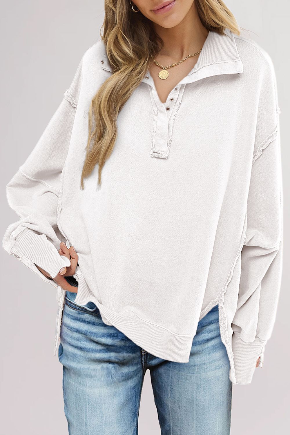 uttoned Collared Raw Detail High Low Baggy Sweatshirt with Slits