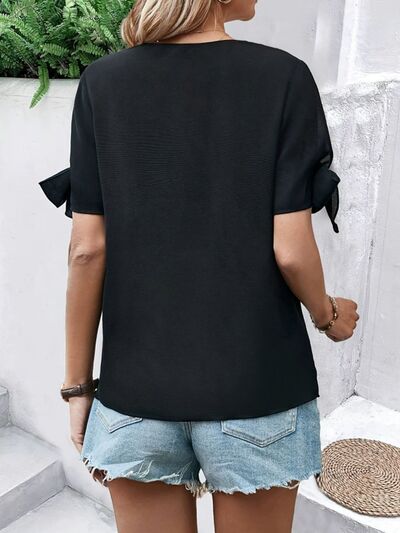 V-Neck Bow Short Sleeve Blouse