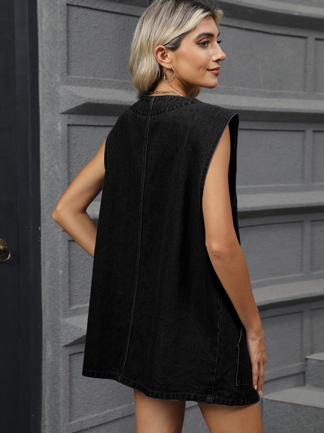V-Neck Button Up Denim Vest