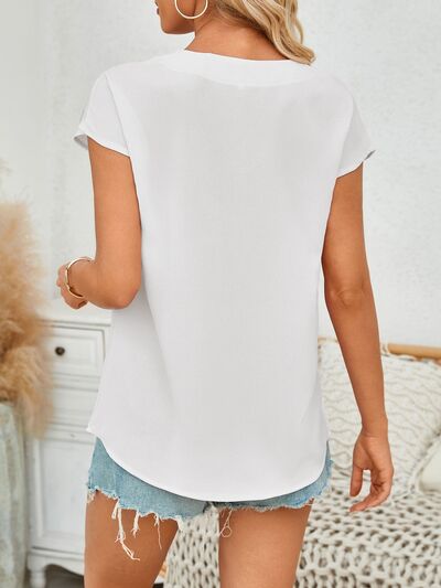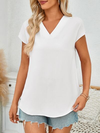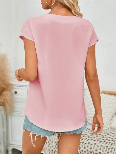 V-Neck Cap Sleeve Blouse