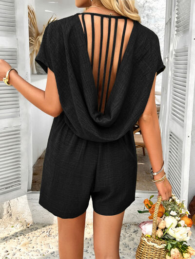 V-Neck Casual Short Sleeve Romper with Pockets