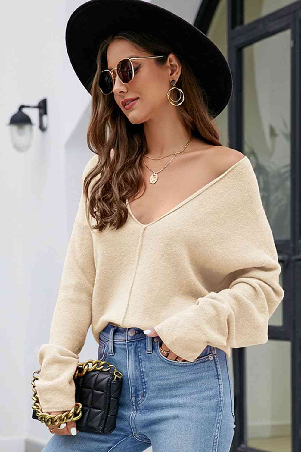 V-Neck Center Seam Sweater