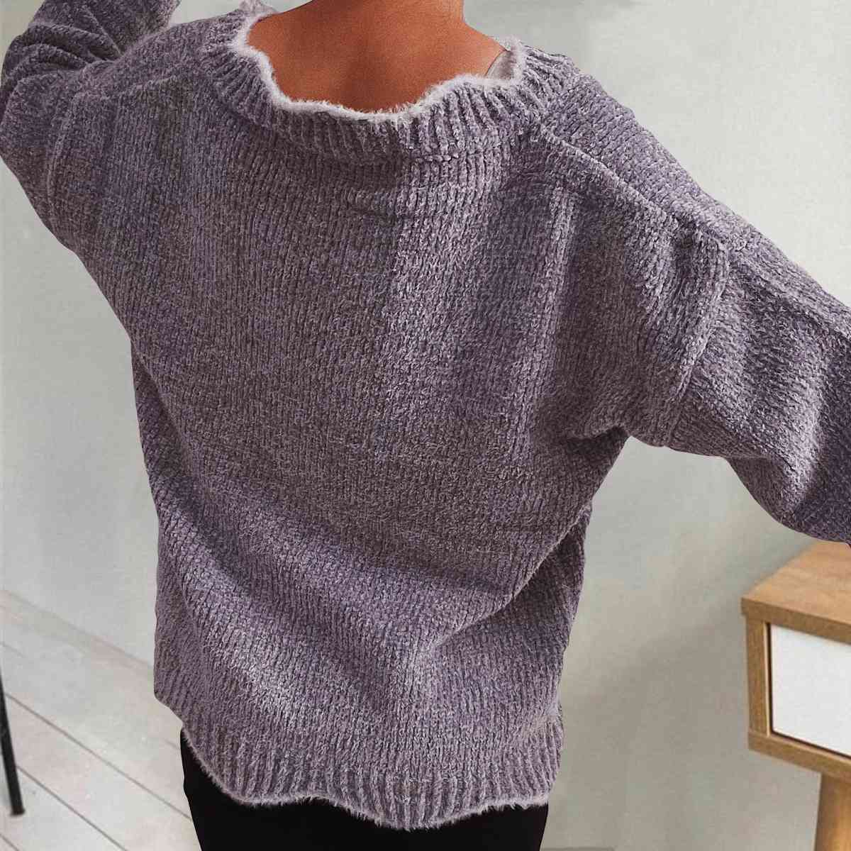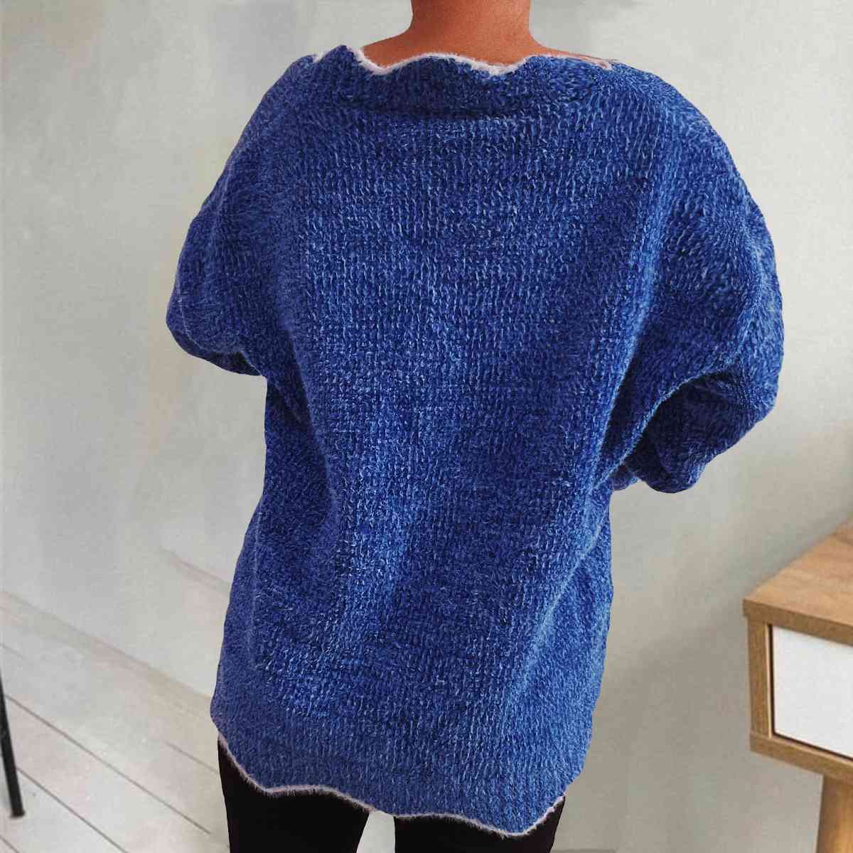 V-Neck Drop Shoulder Long Sleeve Sweater
