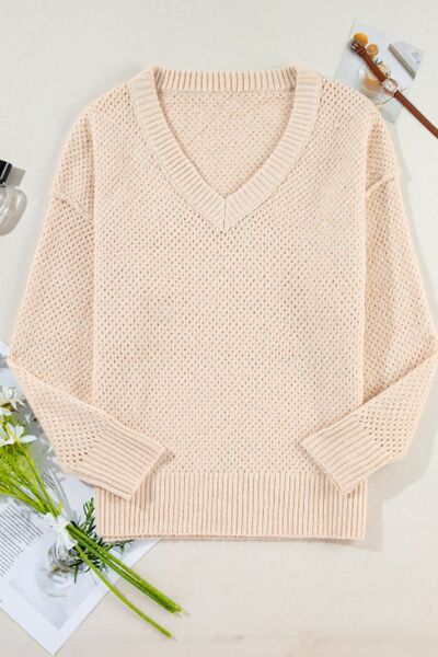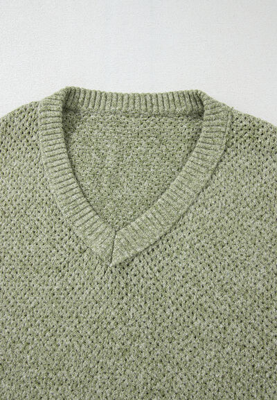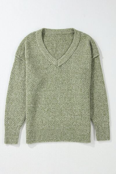 V-Neck Dropped Shoulder Long Sleeve Sweater