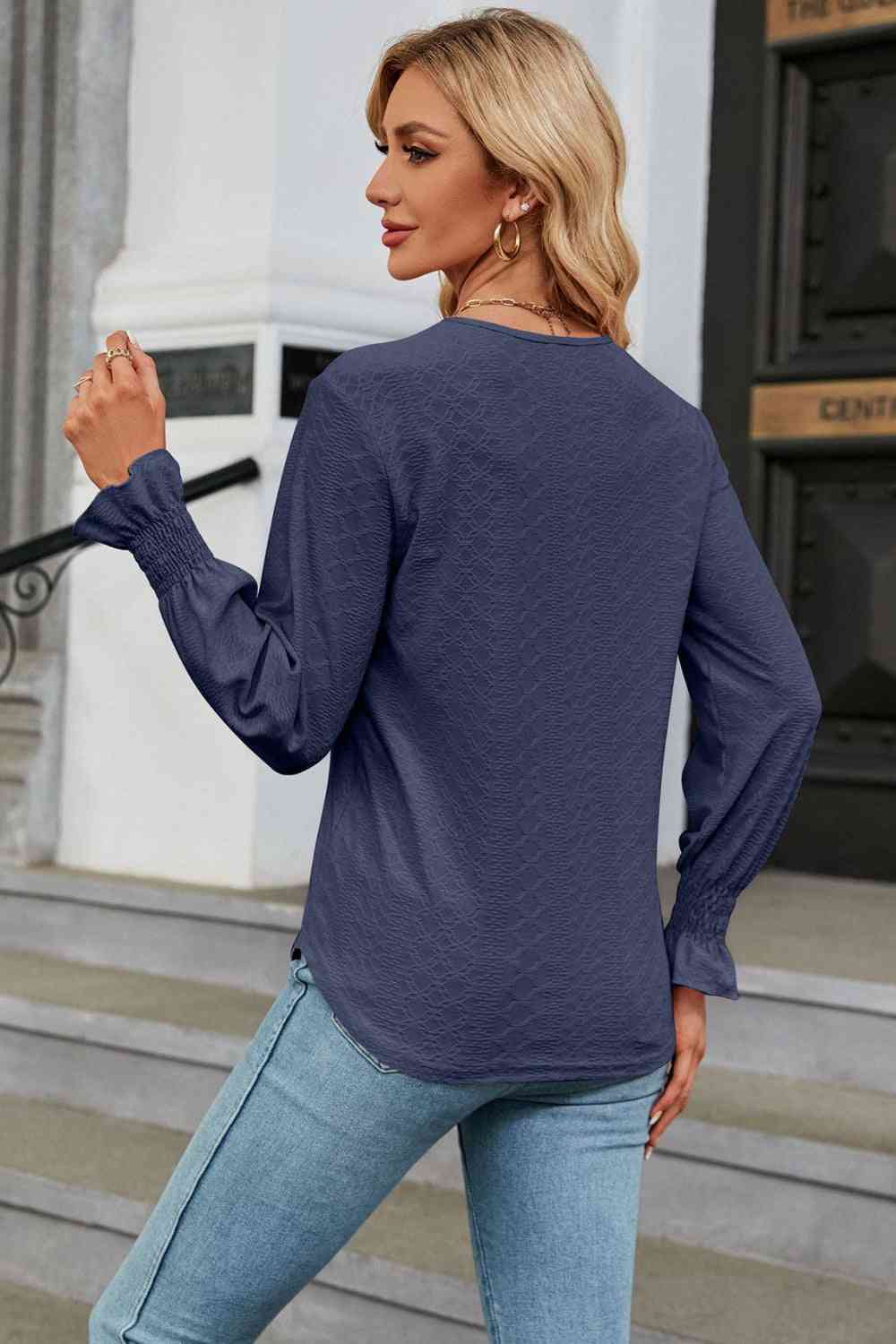 V-Neck Flounce Sleeve Blouse