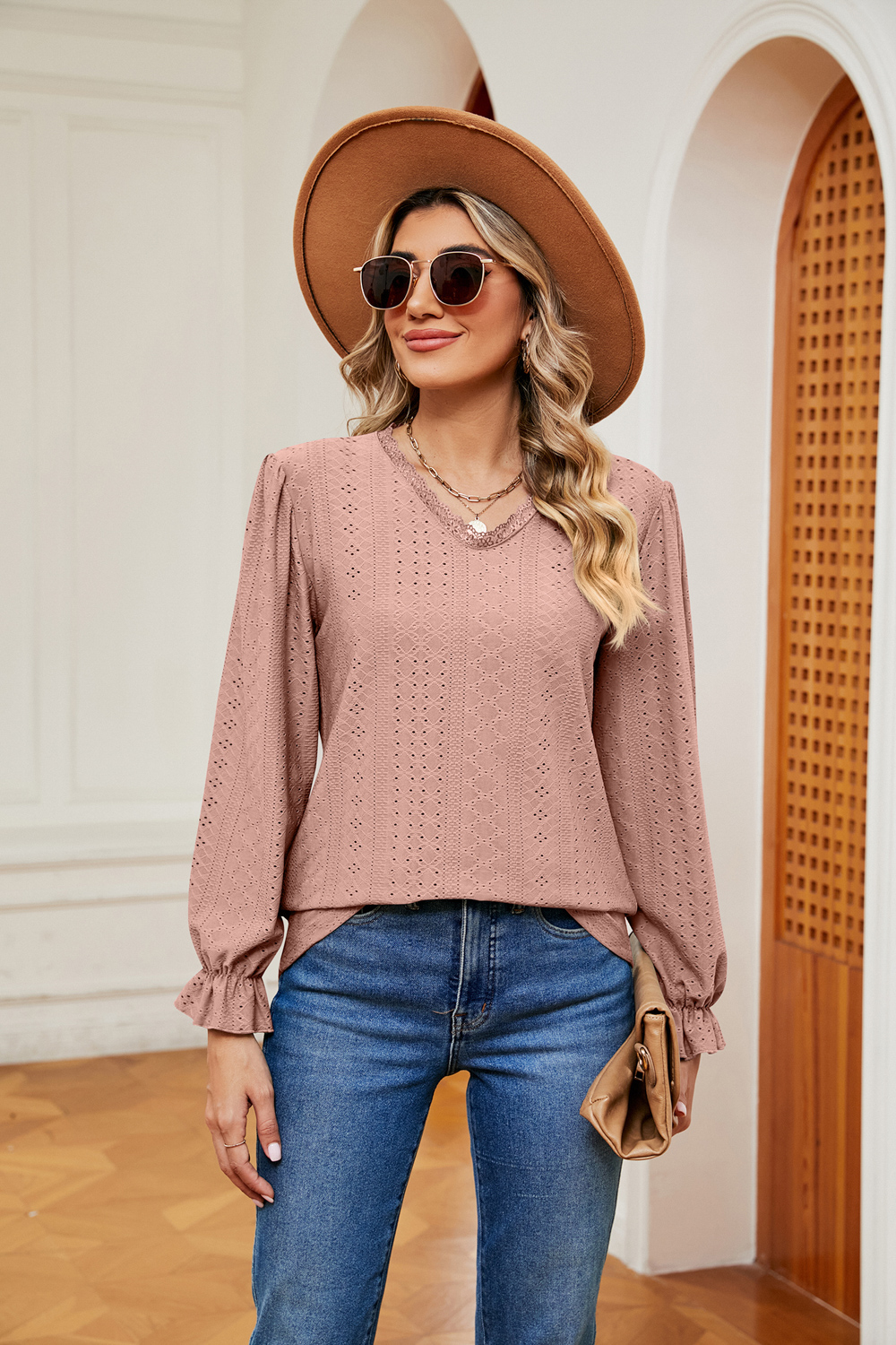 V-Neck Flounce Sleeve Blouse