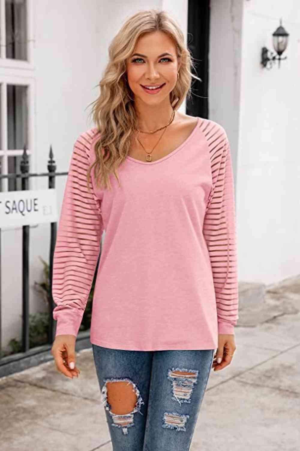 V-Neck Long Raglan Sleeve Top