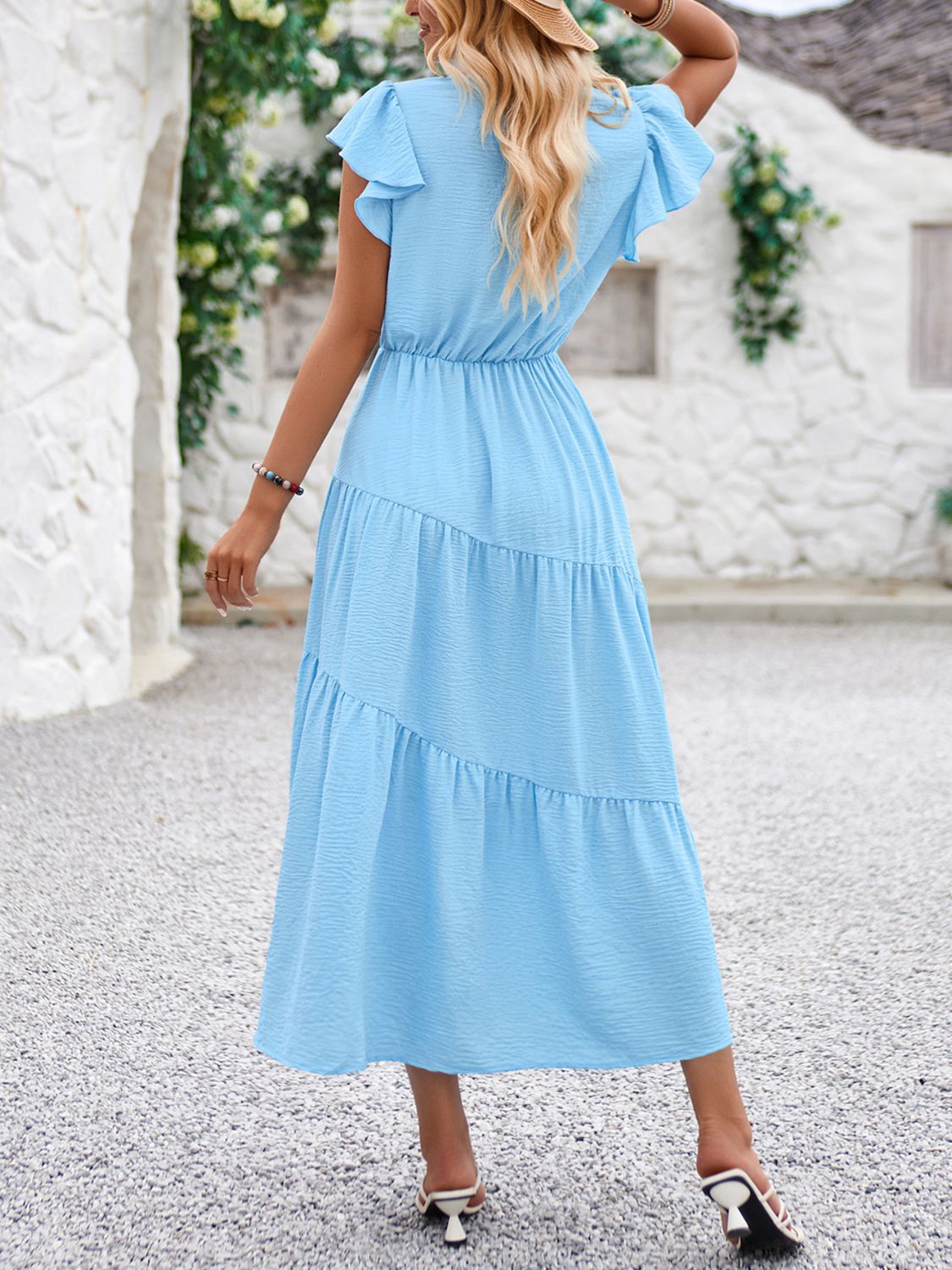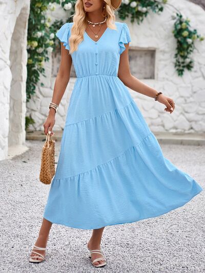 V-Neck Ruffle Sleeve Dress