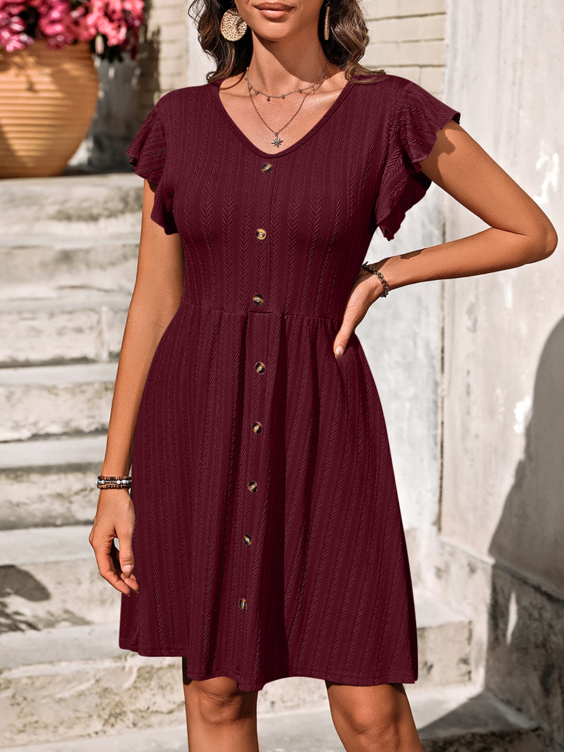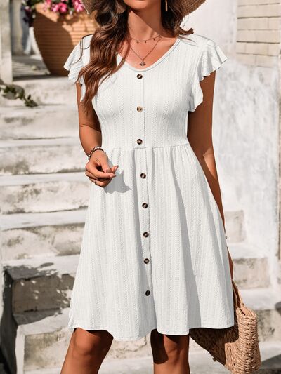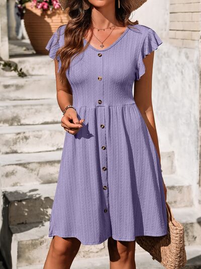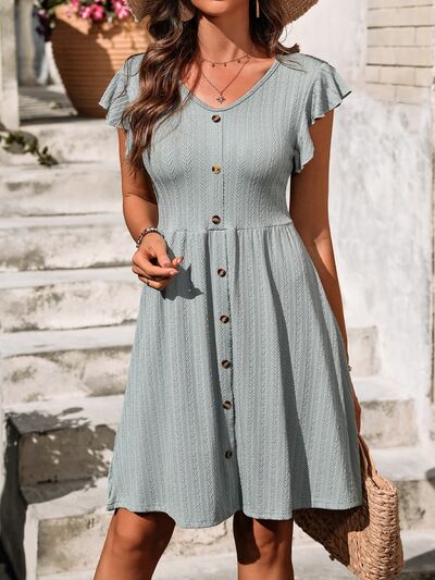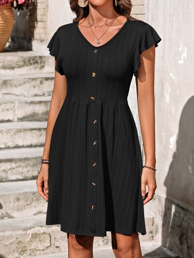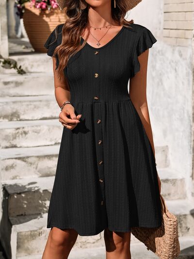 V-Neck Ruffled Cap Sleeve Dress
