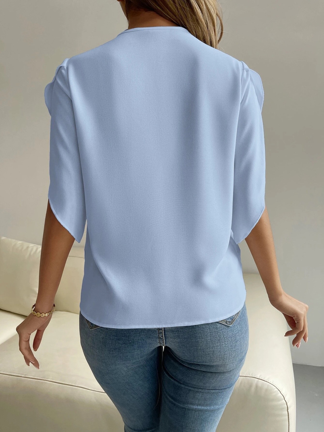 V-Neck Short Sleeve Blouse