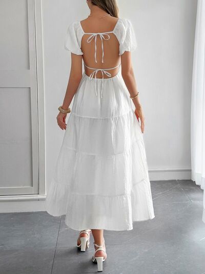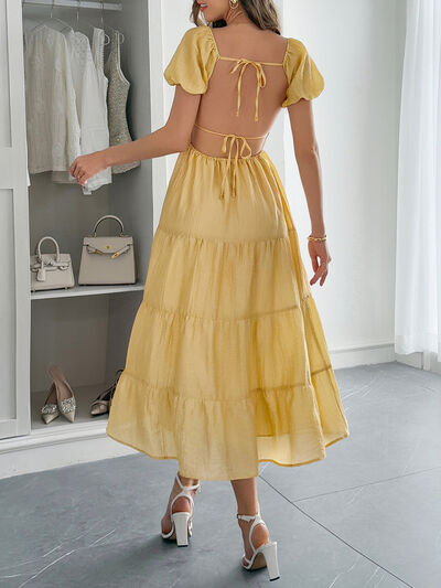 V-Neck Short Sleeve Midi Dress