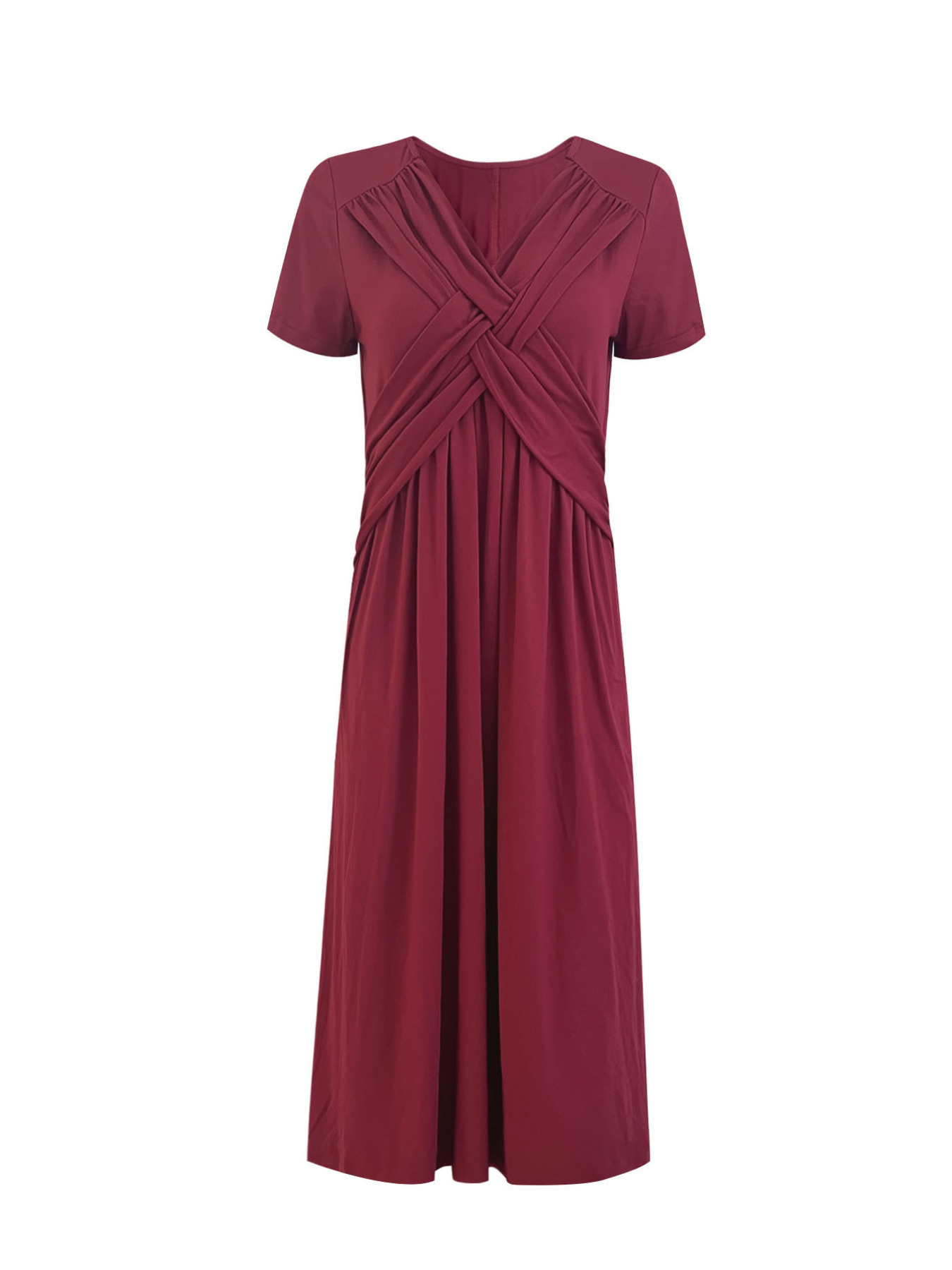 V-Neck Short Sleeve Midi Dress