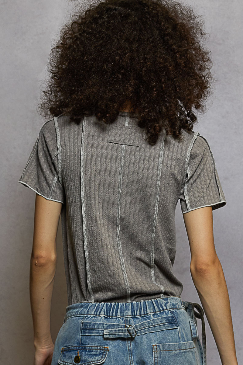 V-Neck Short Sleeve Top with Stitch Seam Detail