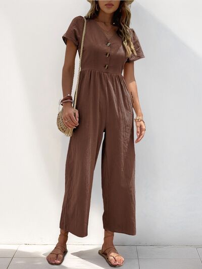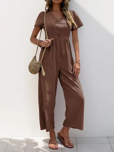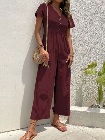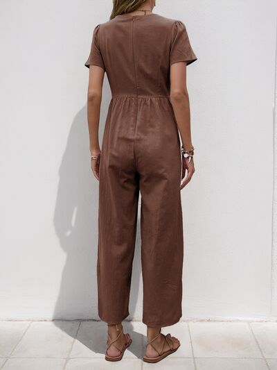 V-Neck Short Sleeve Wide Leg Jumpsuit