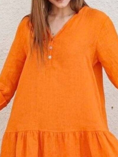 V-Neck Tiered Button Front Dress