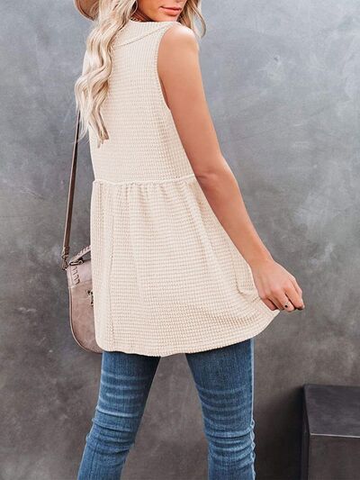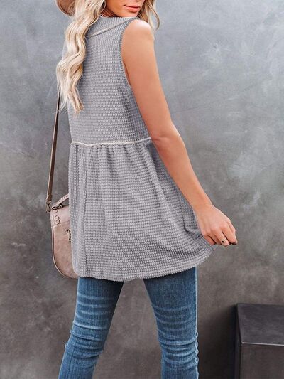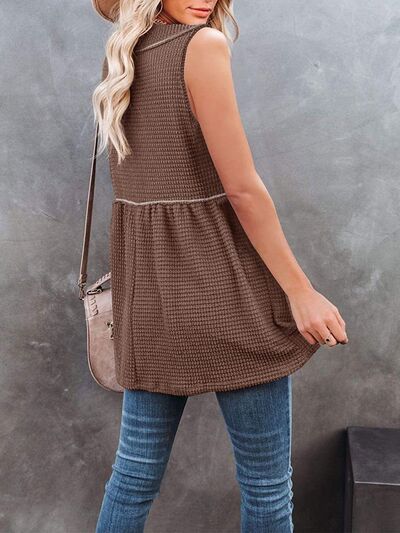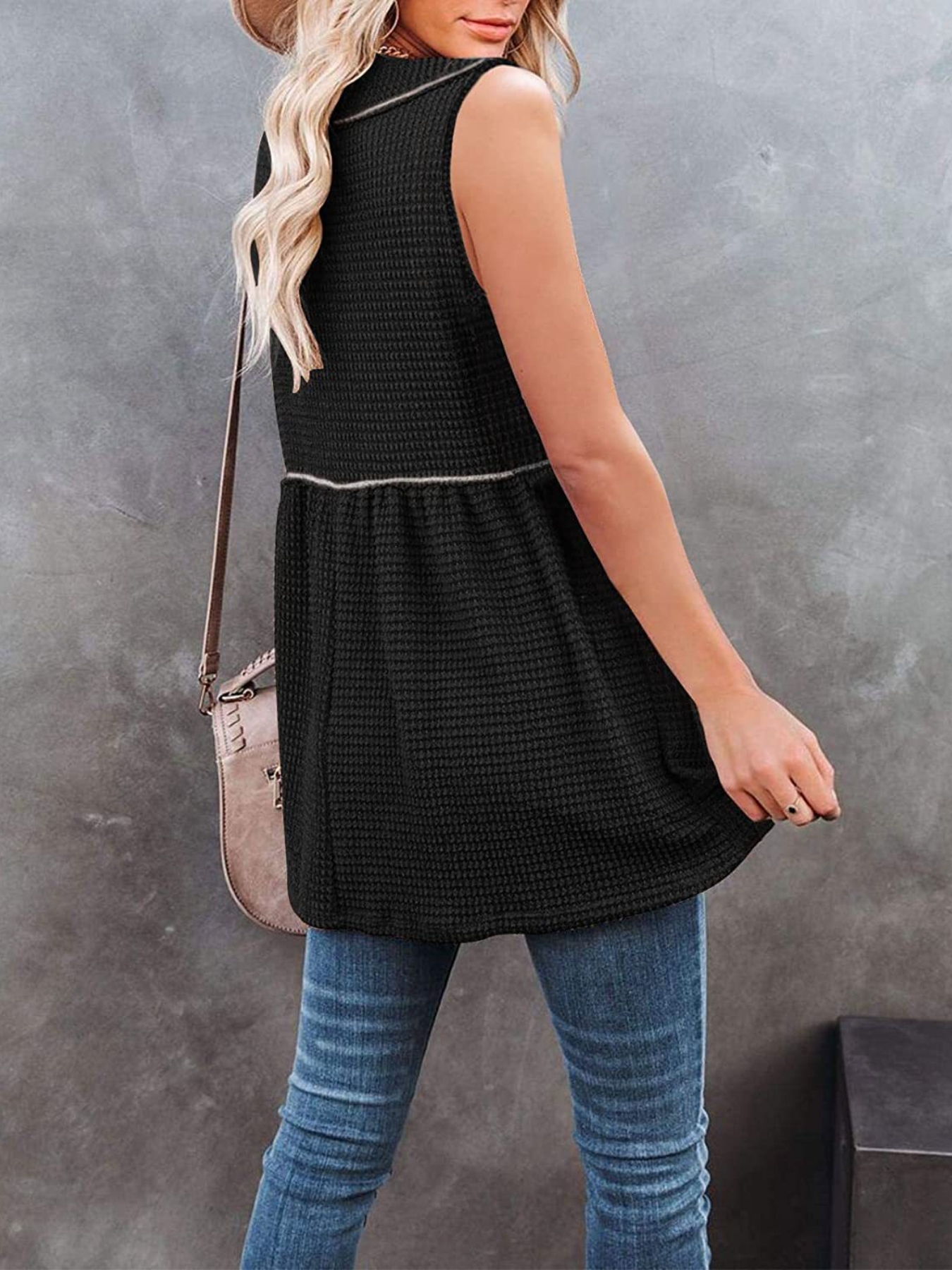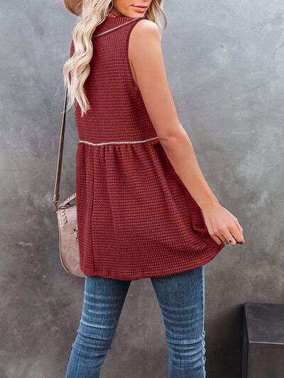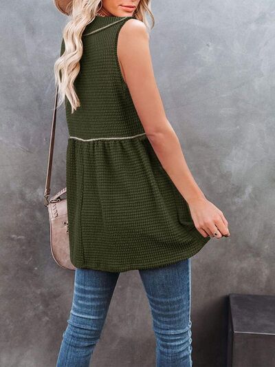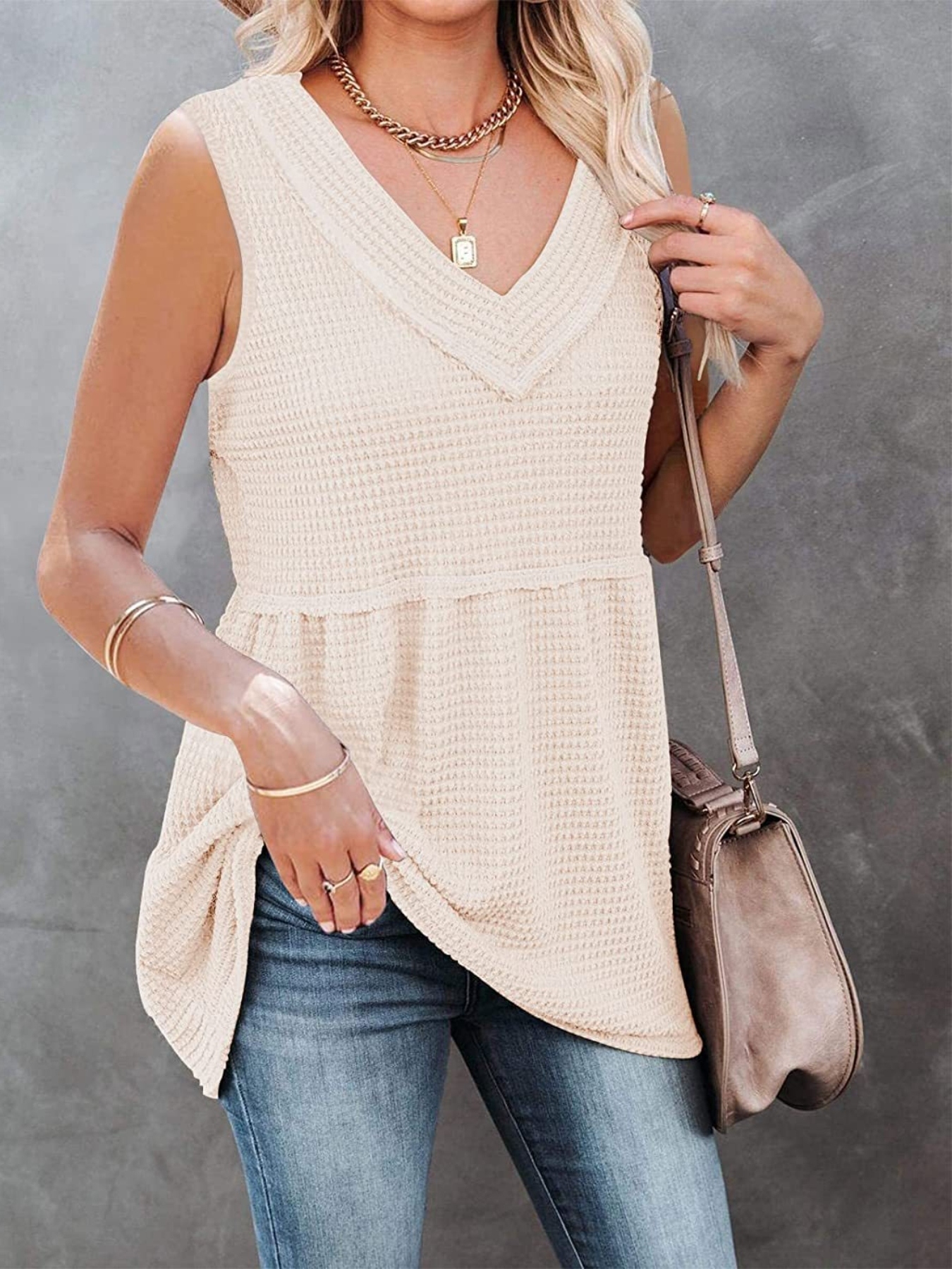 V-Neck Waffle Knit Tank Top with Contrast Stitching