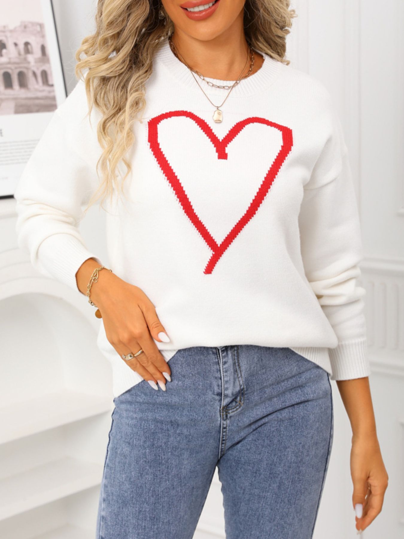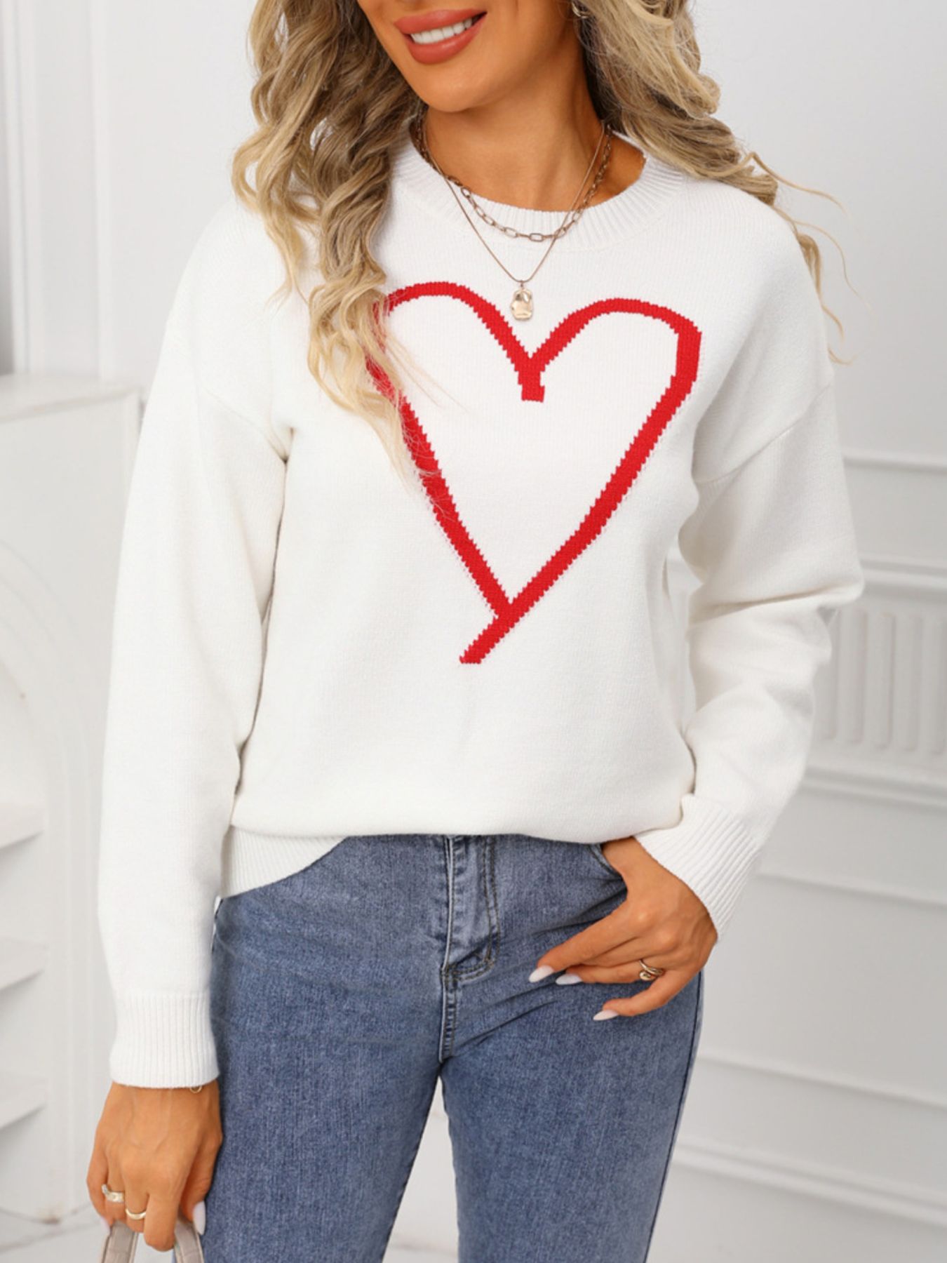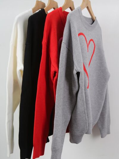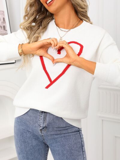 Valentine's Day Heart Graphic Dropped Shoulder Sweater