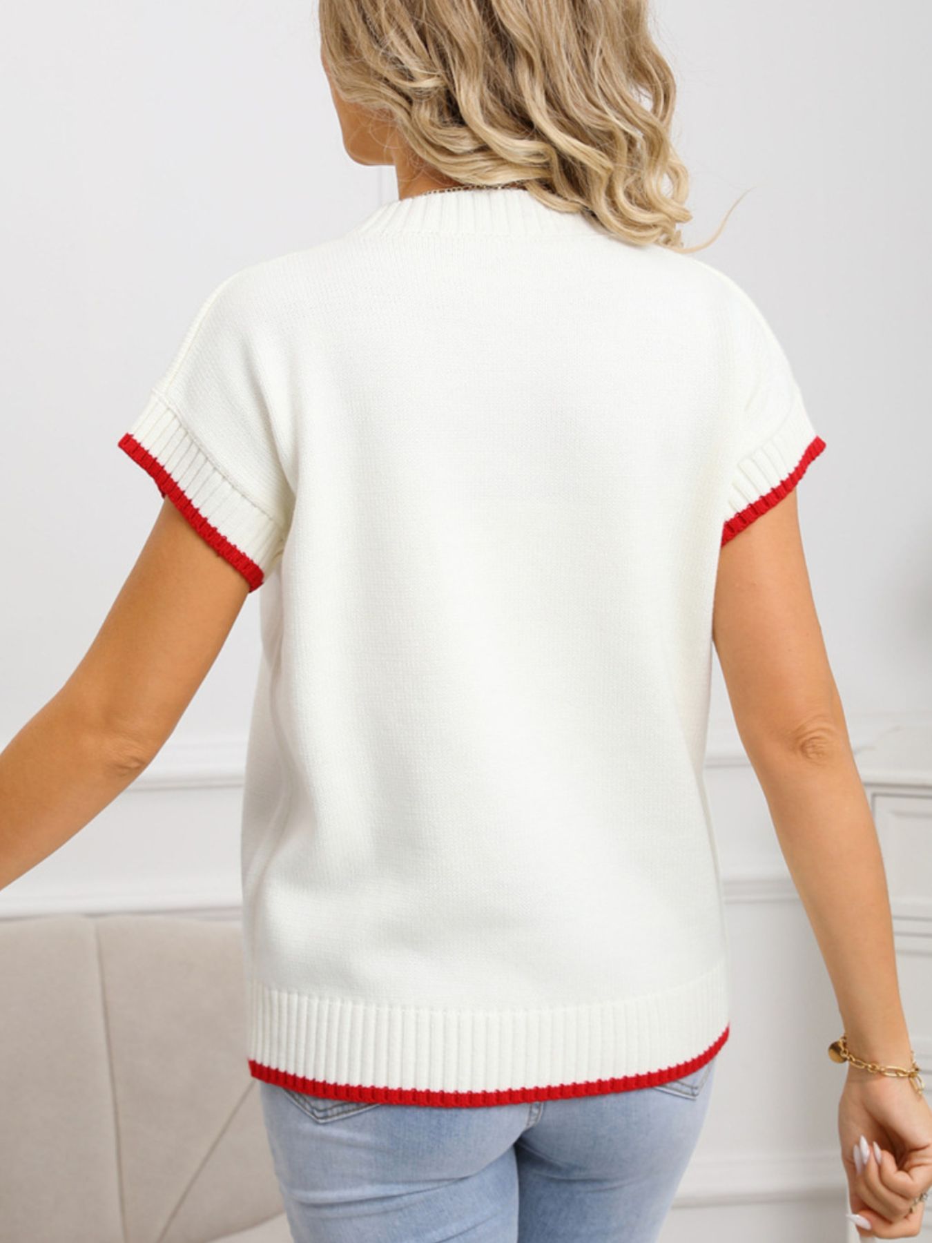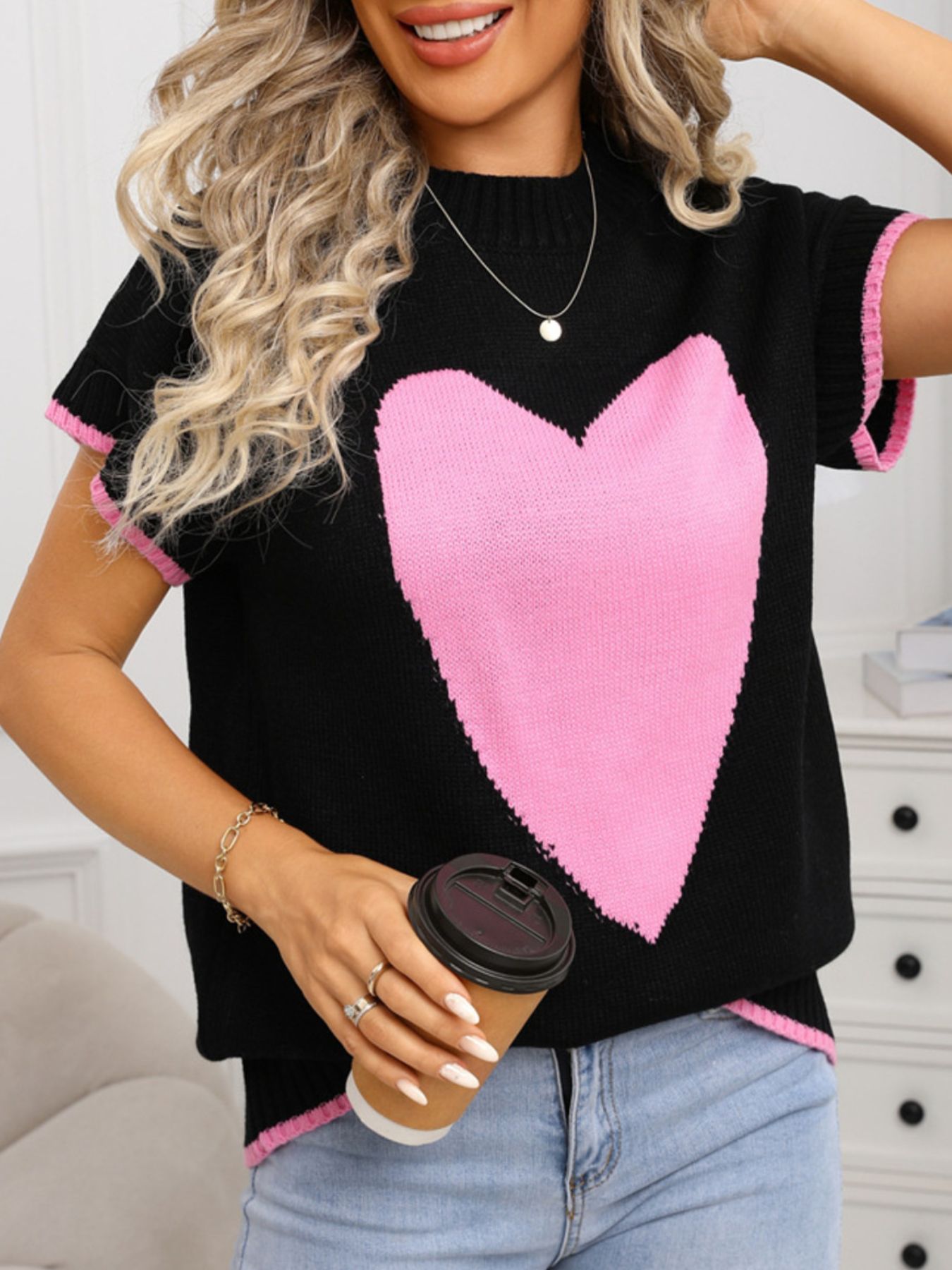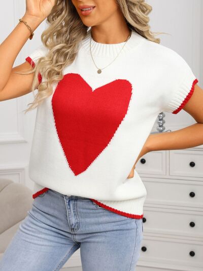 Valentine's Day Heart Graphic Short Sleeve Sweater