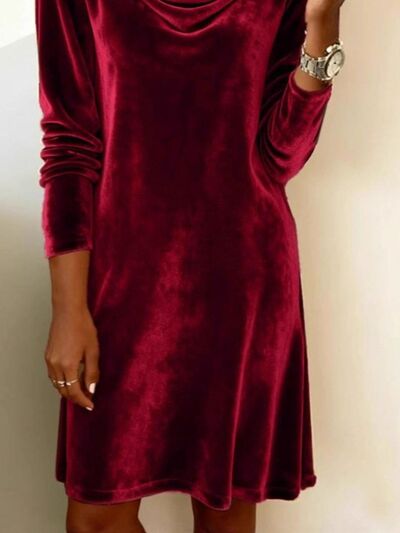 Velvet Cowl Neck Long Sleeve Mini Dress