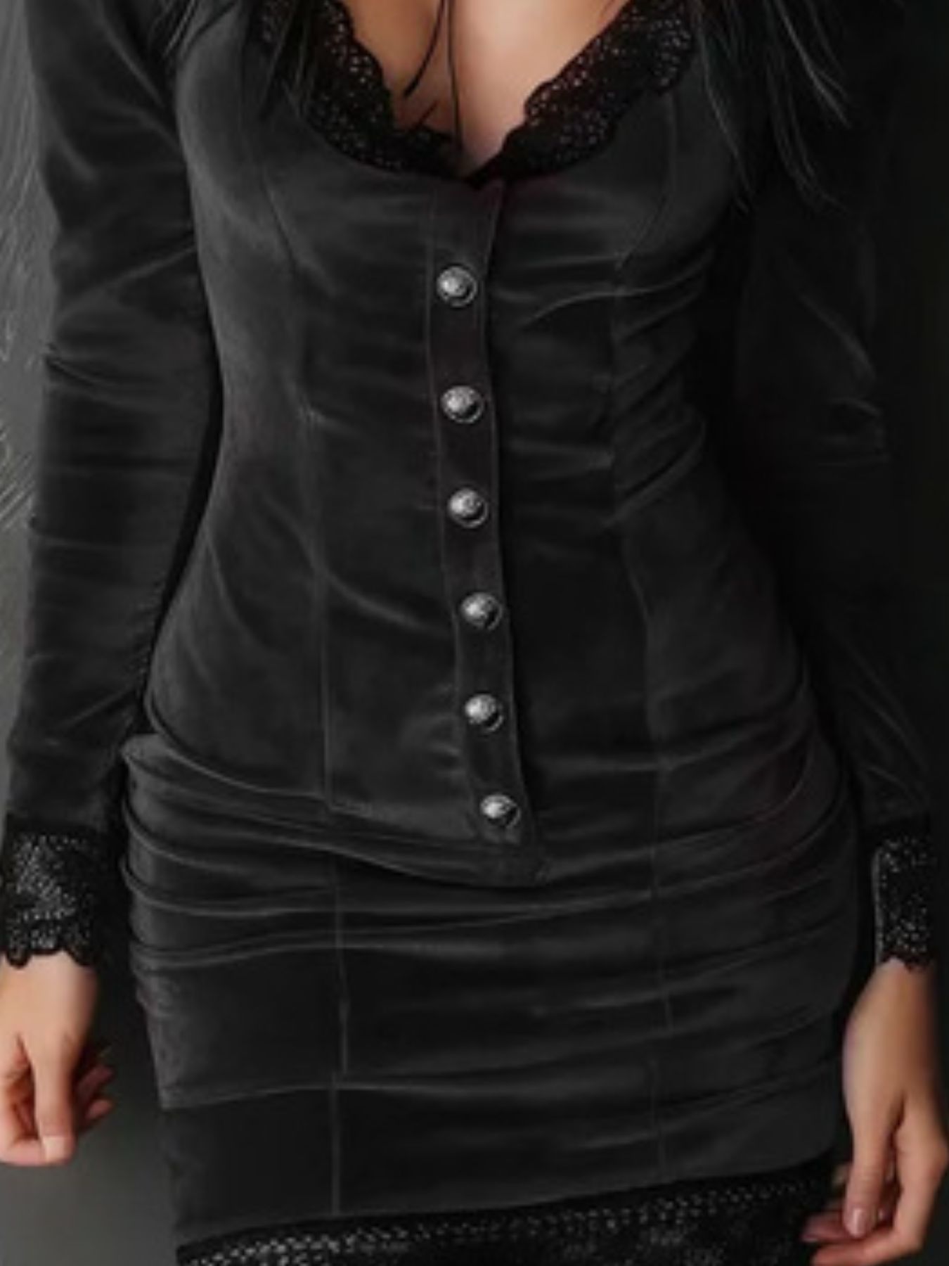 Velvet Lace Trim Bodycon Dress