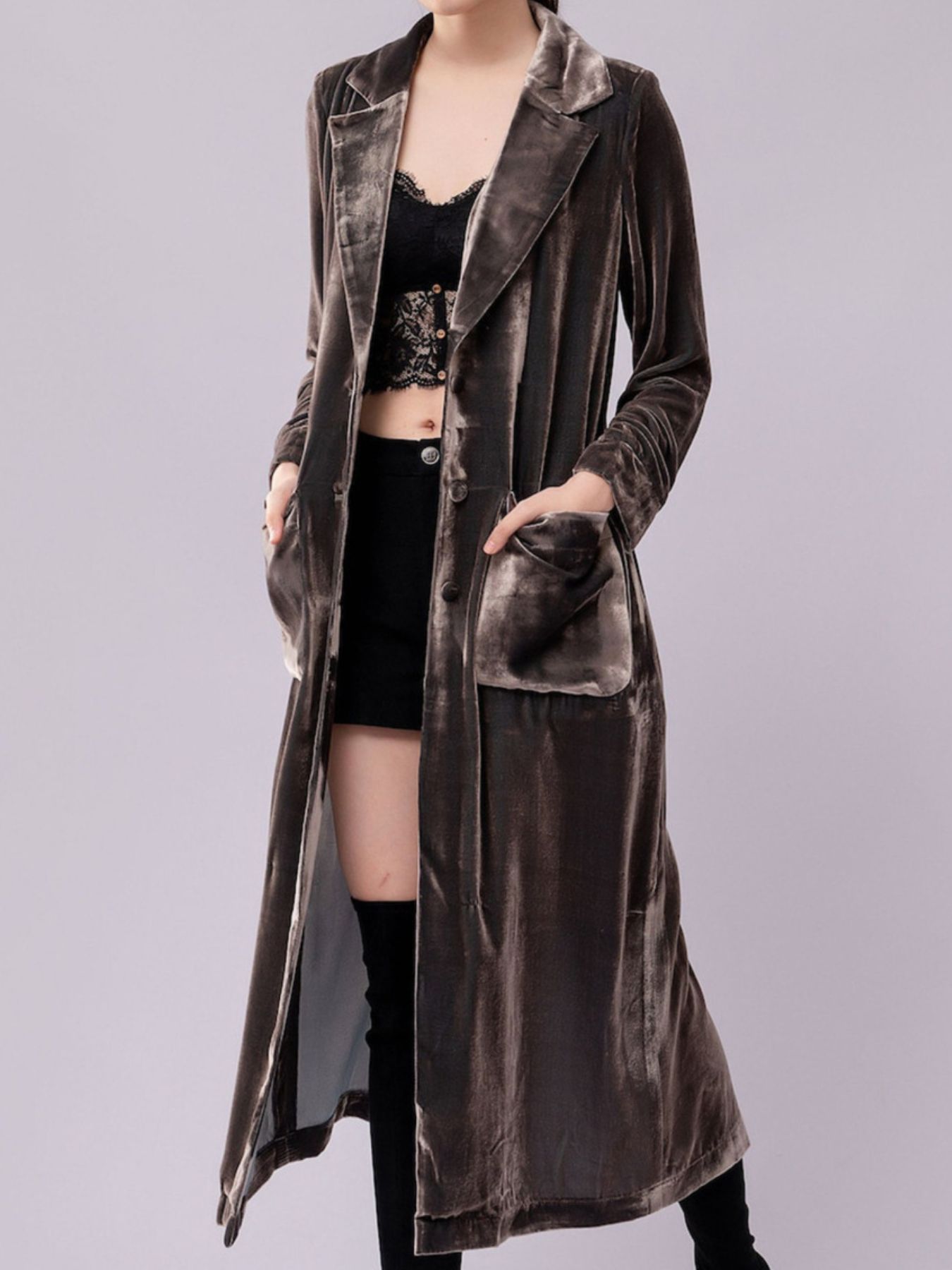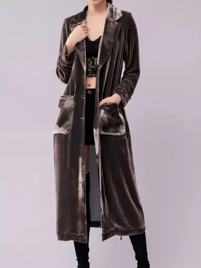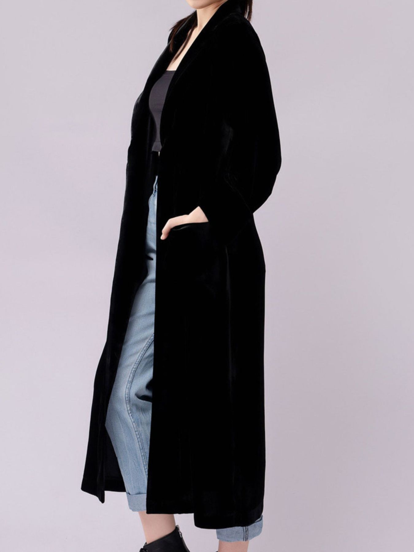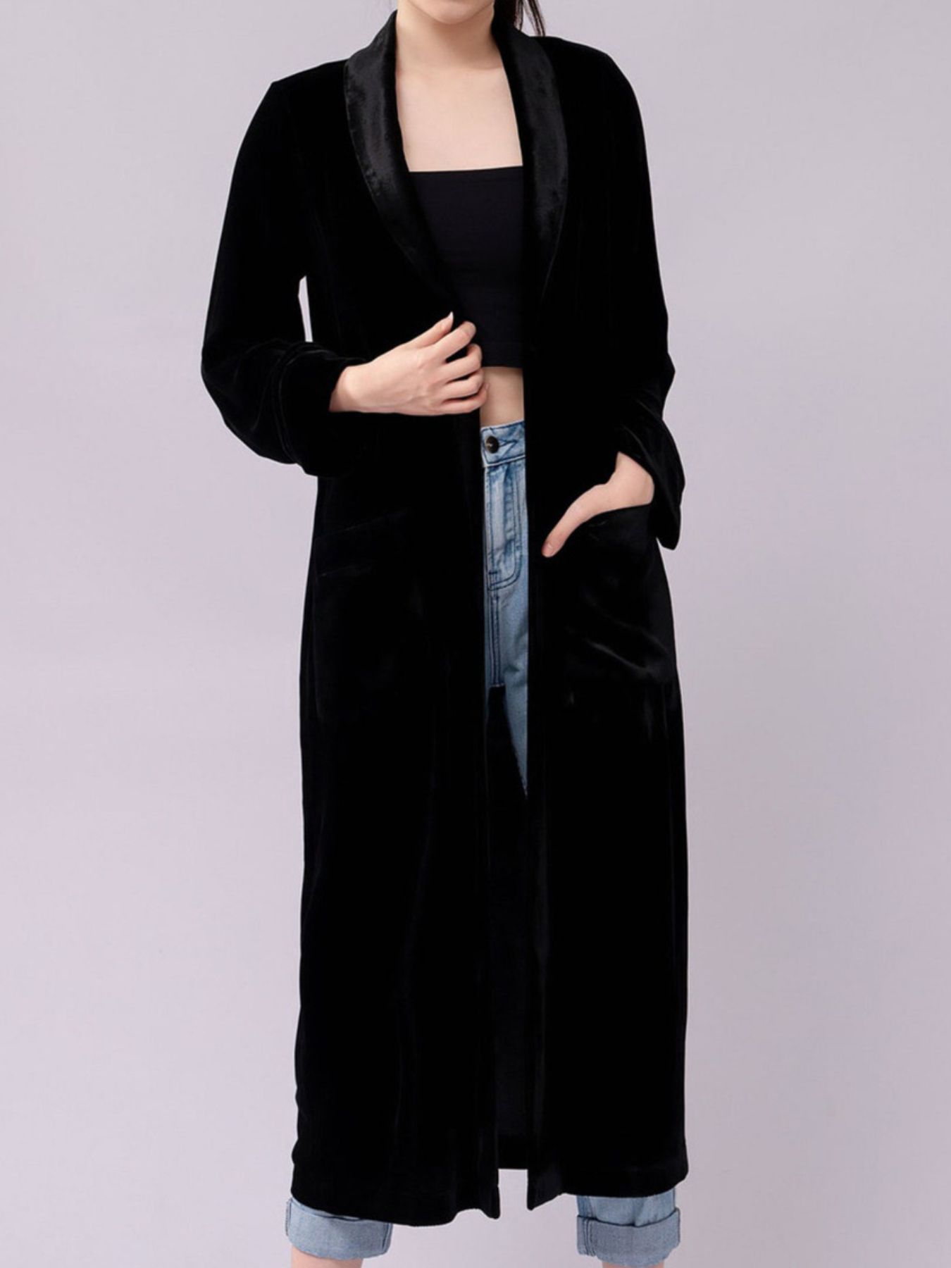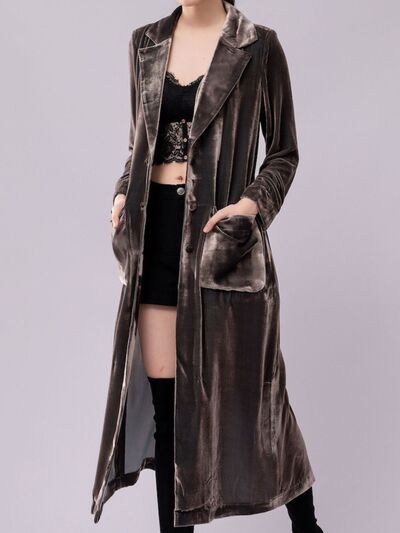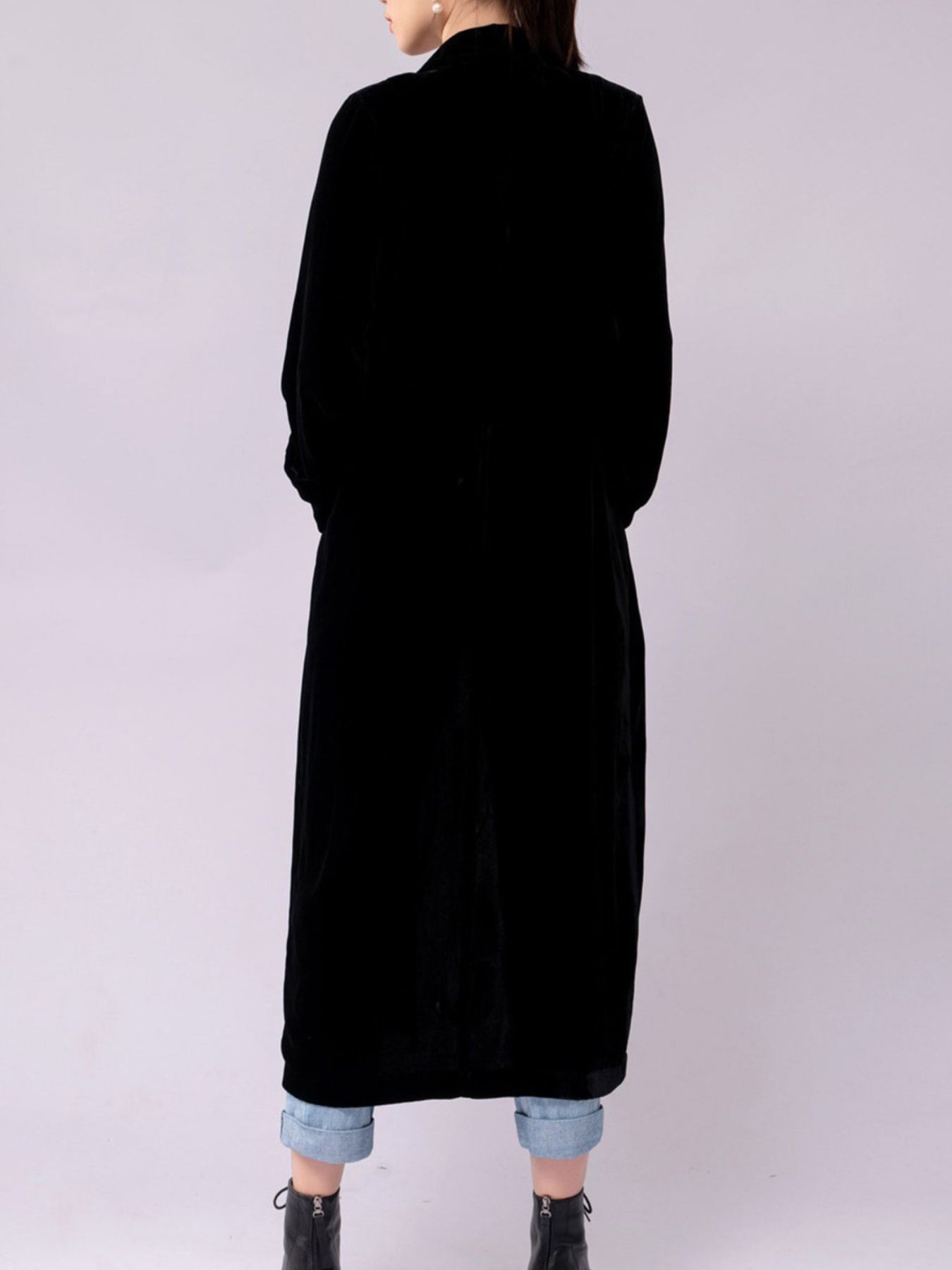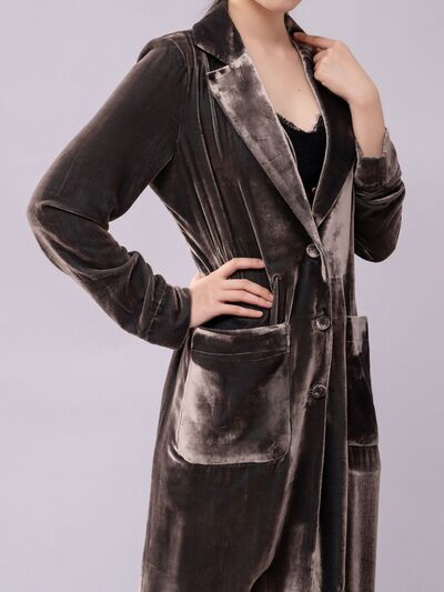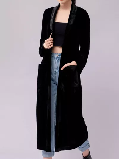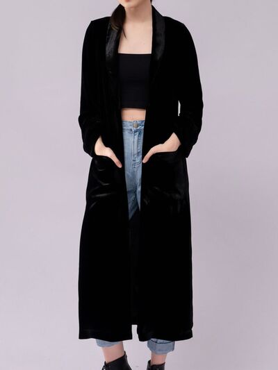 Velvet Lapel Collar Longline Coat