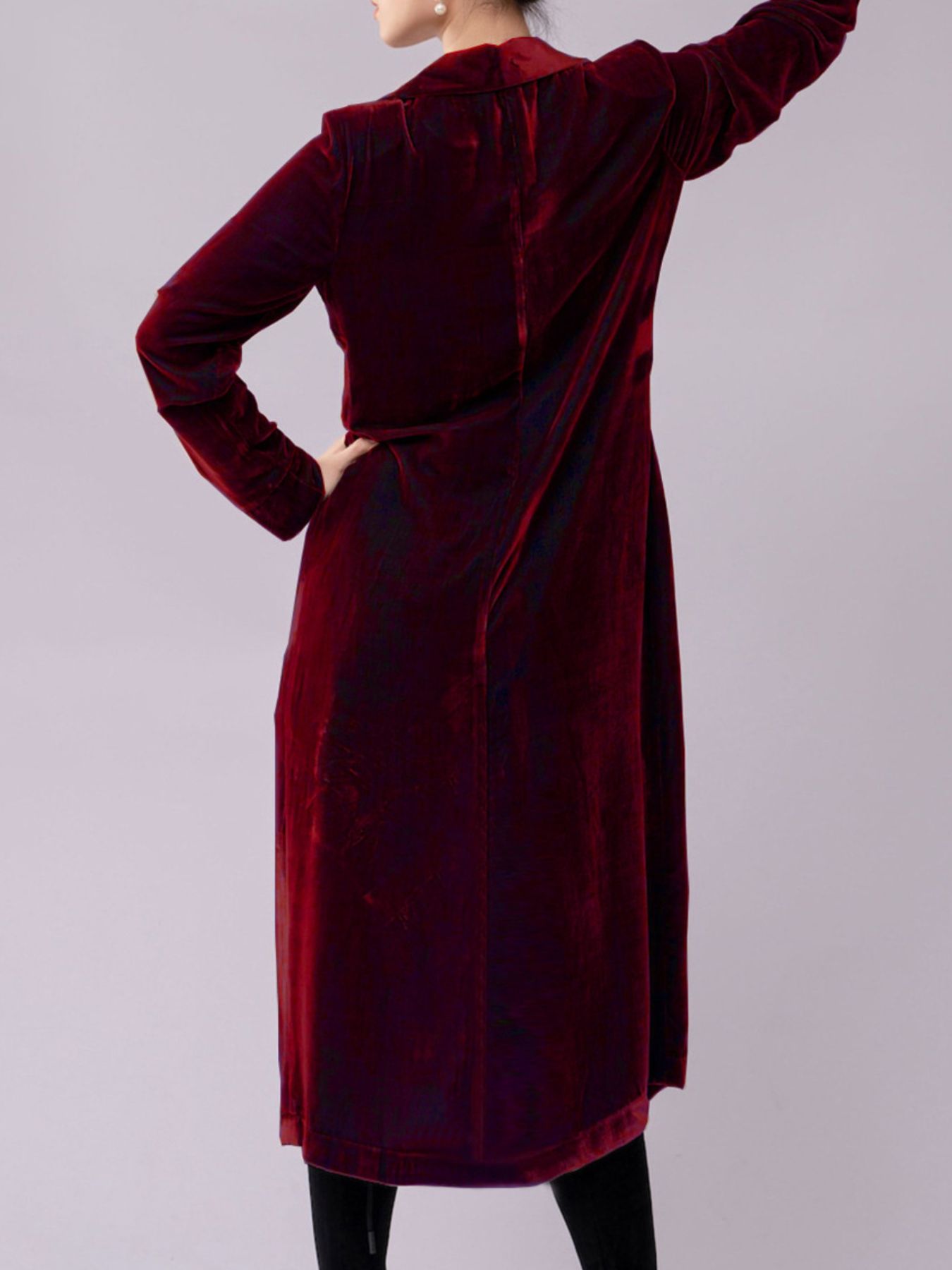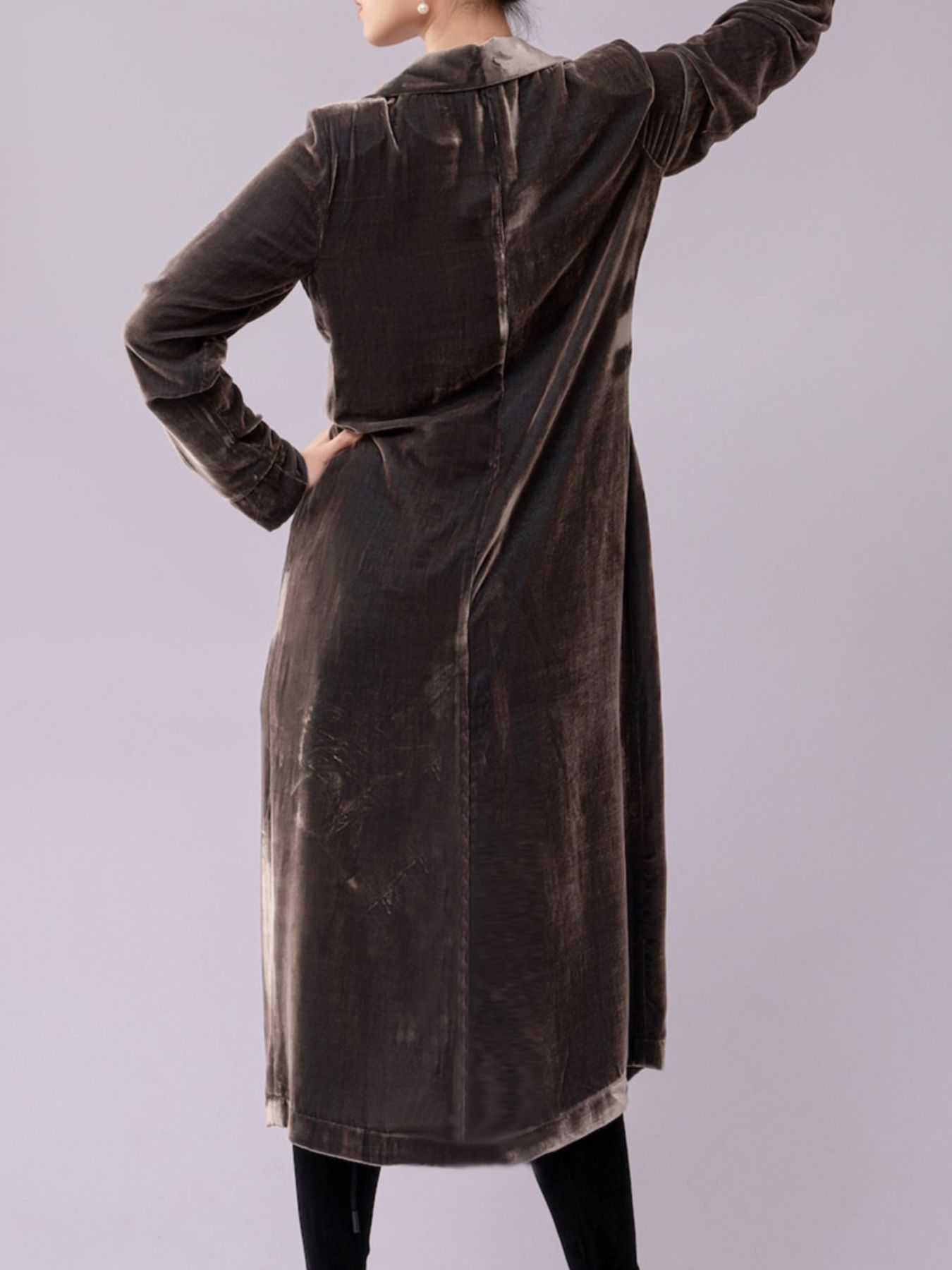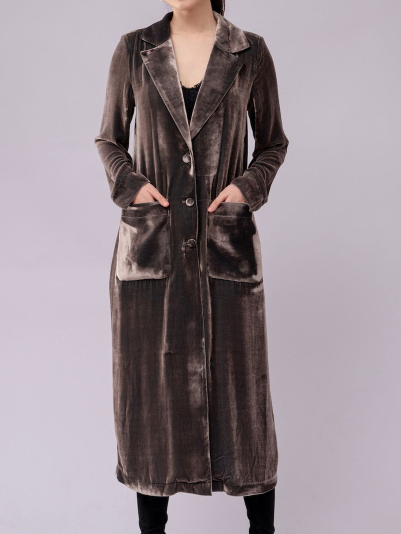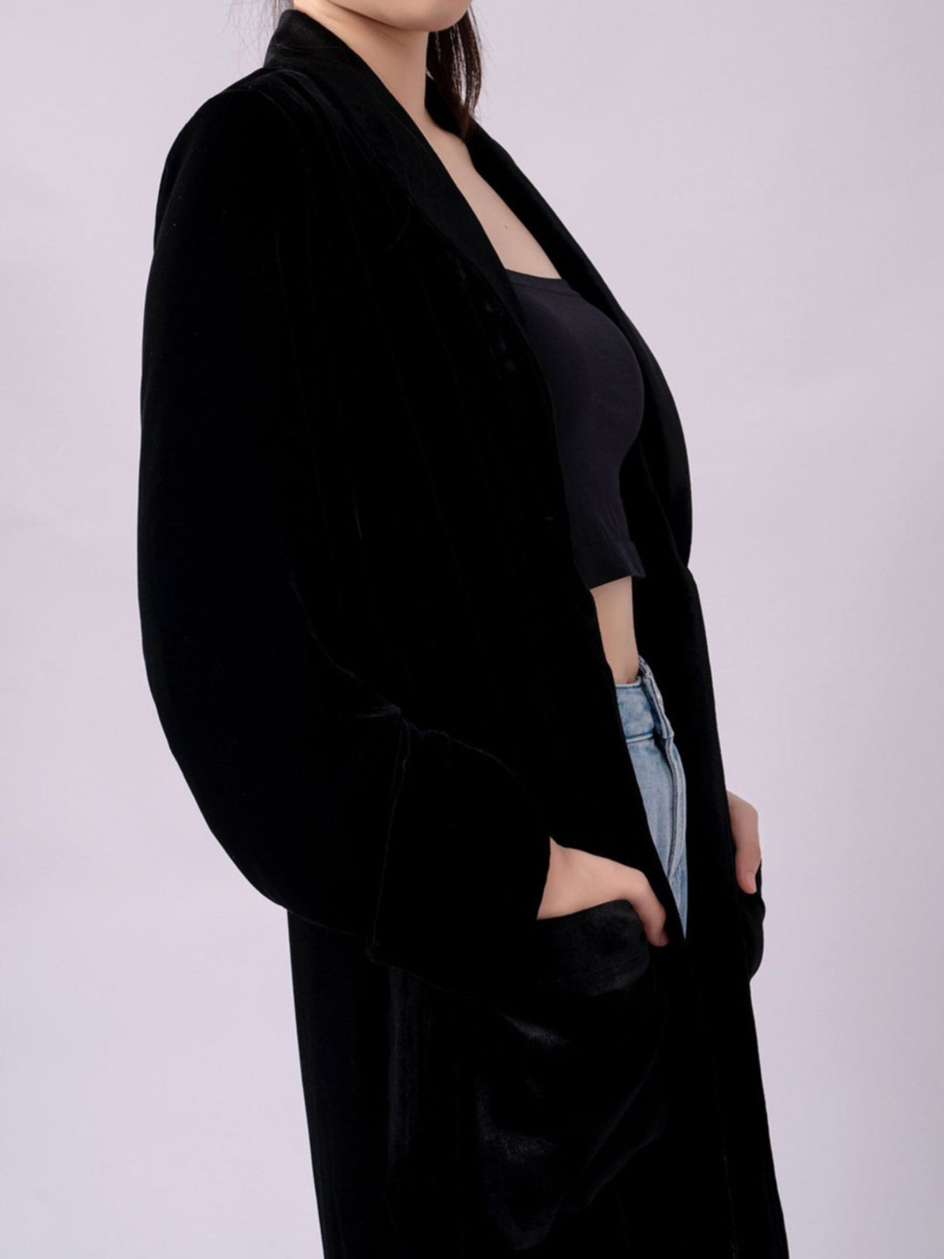 Velvet Lapel Collar Longline Coat