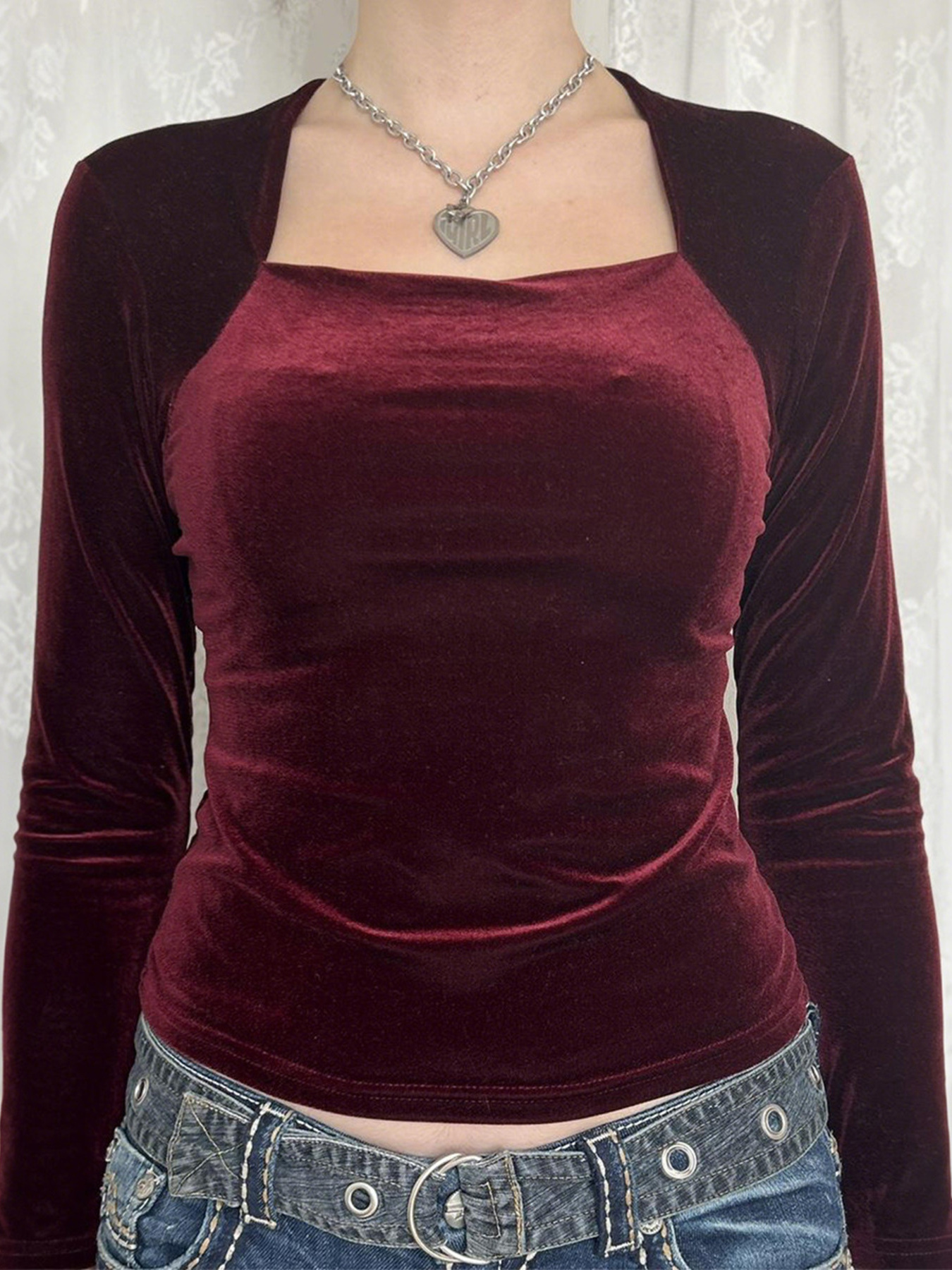 Velvet Long Sleeve Square Neck T-Shirt