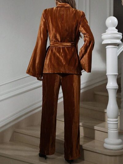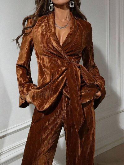 Velvet Tie Waist Blazer and Pants Set