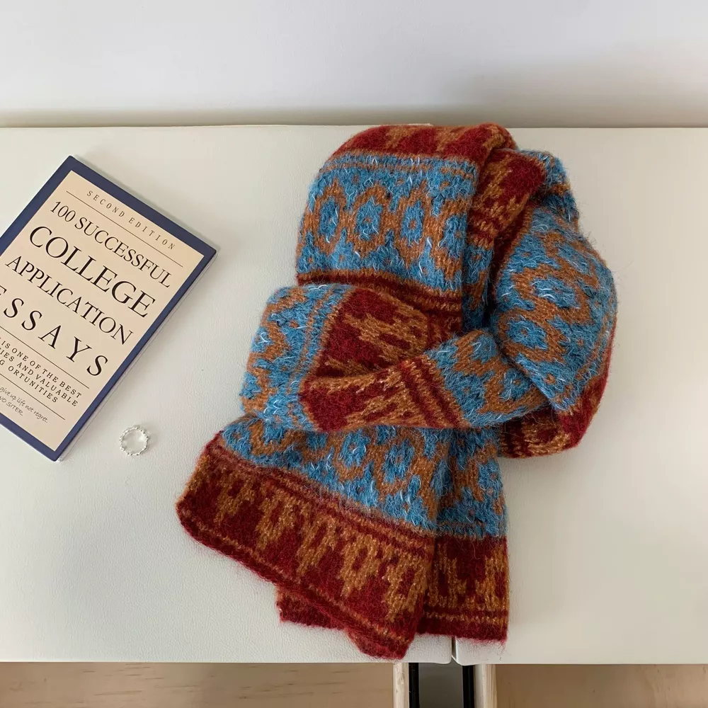 Vintage Knitted Pattern Warm Scarf