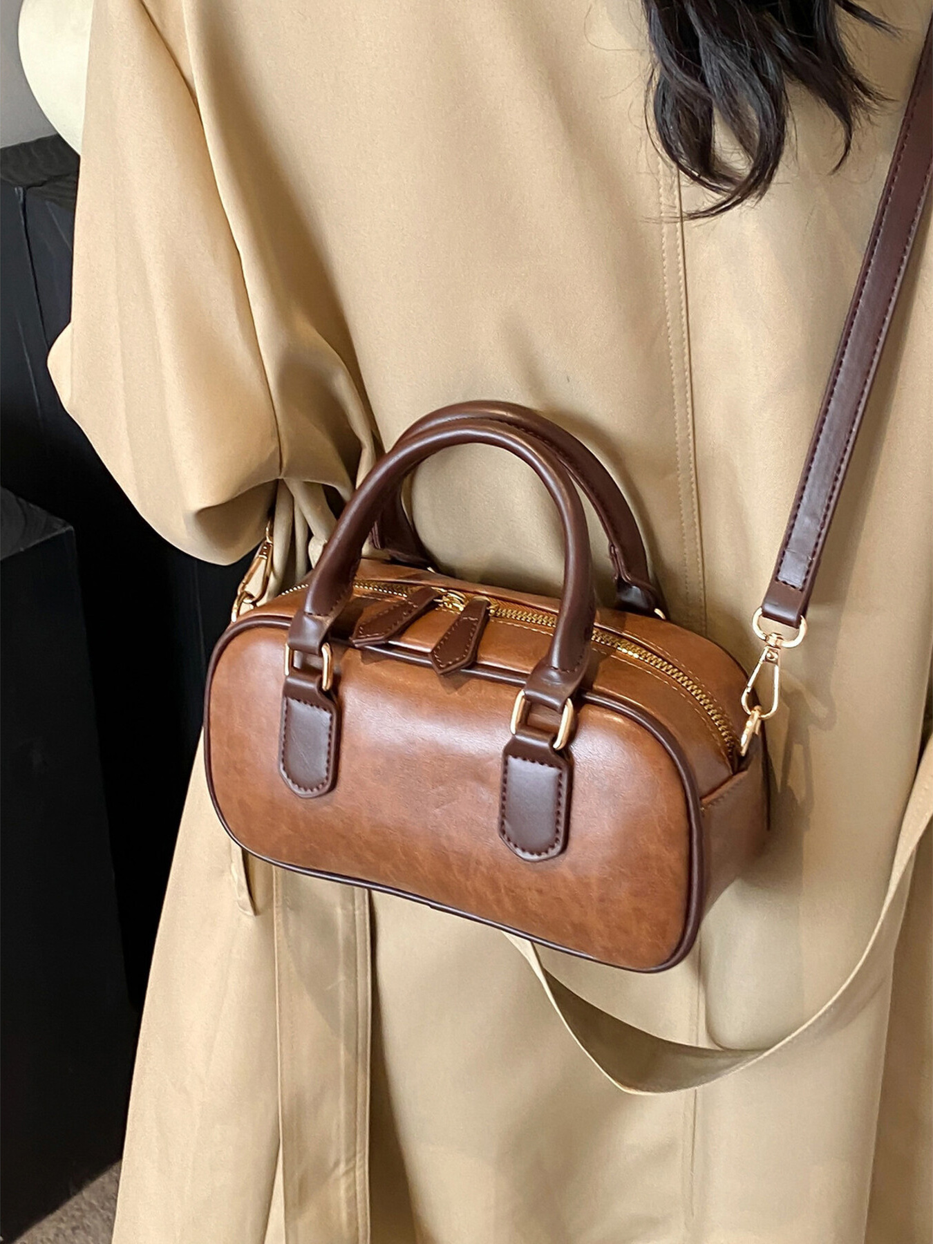 Vintage Style Barrel Crossbody Bag