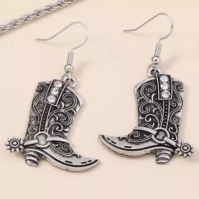 Vintage Western Cowboy Boot Dangle Earrings
