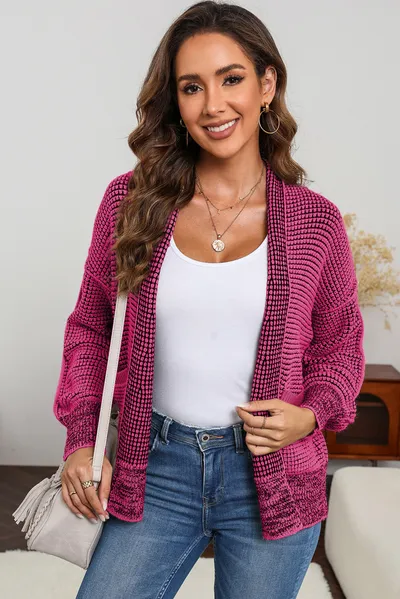 Waffle-knit Pocketed Open Front Cardigan