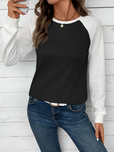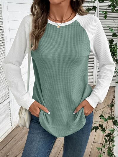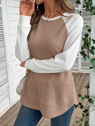 Waffle Knit Raglan Sleeve T-Shirt