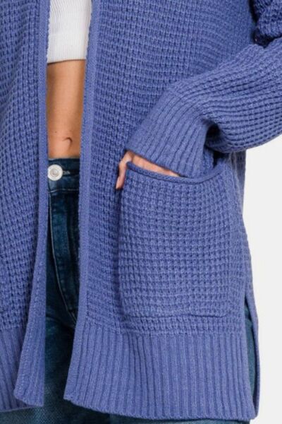 Waffle Open Front Sweater Cardigan