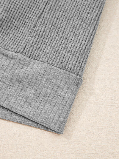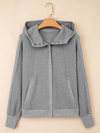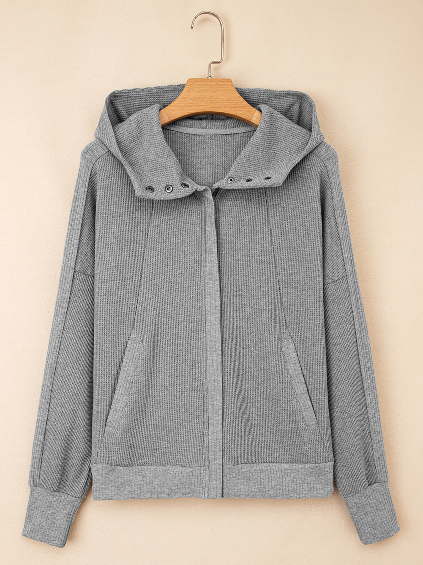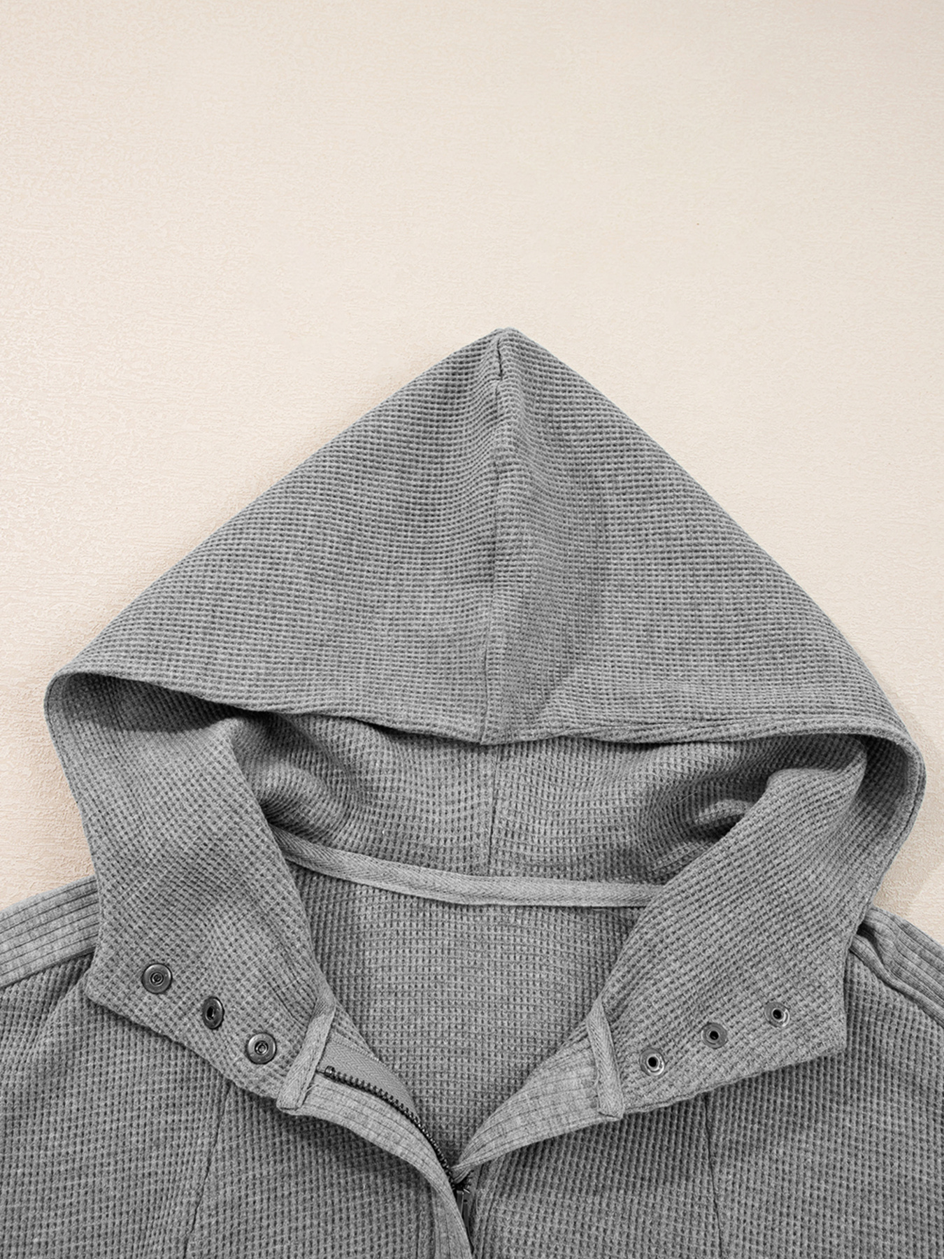 Waffle Splicing Zip Up Front Button Hooded Jacket