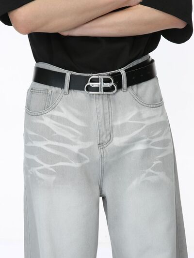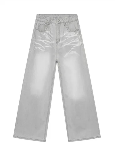 Washed Cat Whisker Straight-Leg Jeans